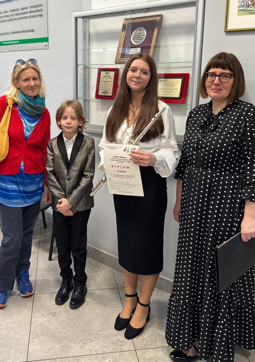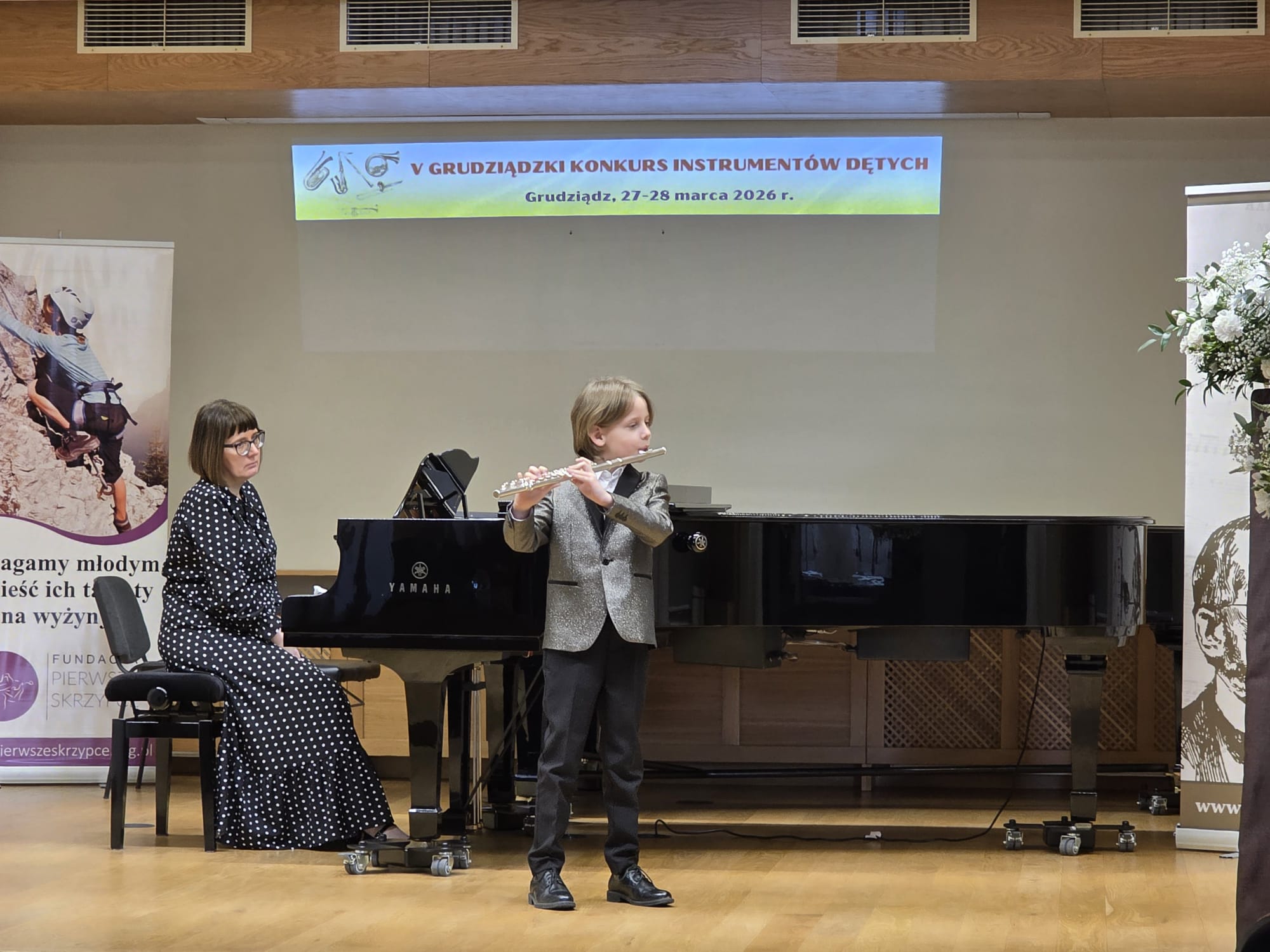 W dniach 27-28 marca 2026 odbył się V Grudziądzki Konkurs Instrumentów Dętych. Naszą szkołą reprezentowali uczniowie z klasy fletu mgr Moniki Tamulewicz – MAKSYMILIAN JĘDRUCH oraz IZABELA KOZIURA, którzy swą świetną grę otrzymali WYRÓŻNIENIA. Flecistom akompaniowała mgr Monika Madej-Strukiel, która otrzymała dyplom za wyróżniający akompaniament. GRATULUJEMY!