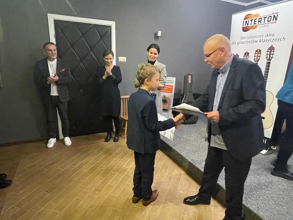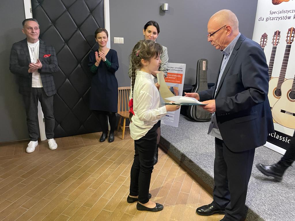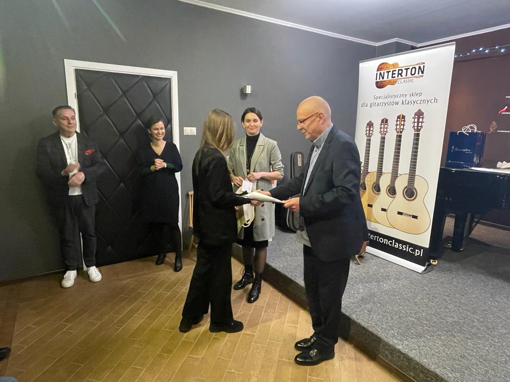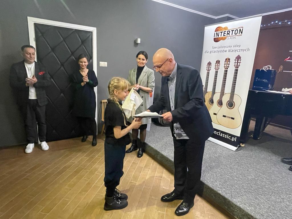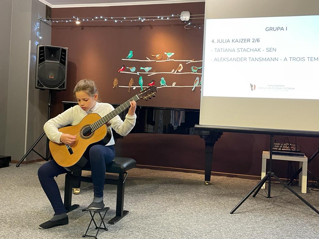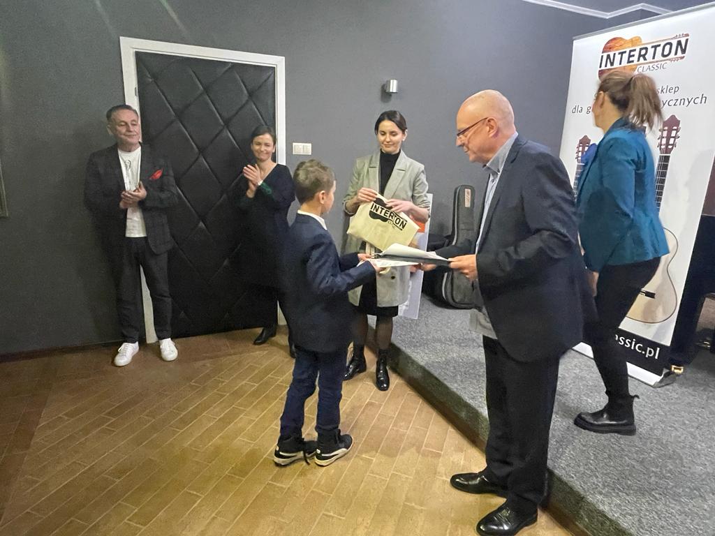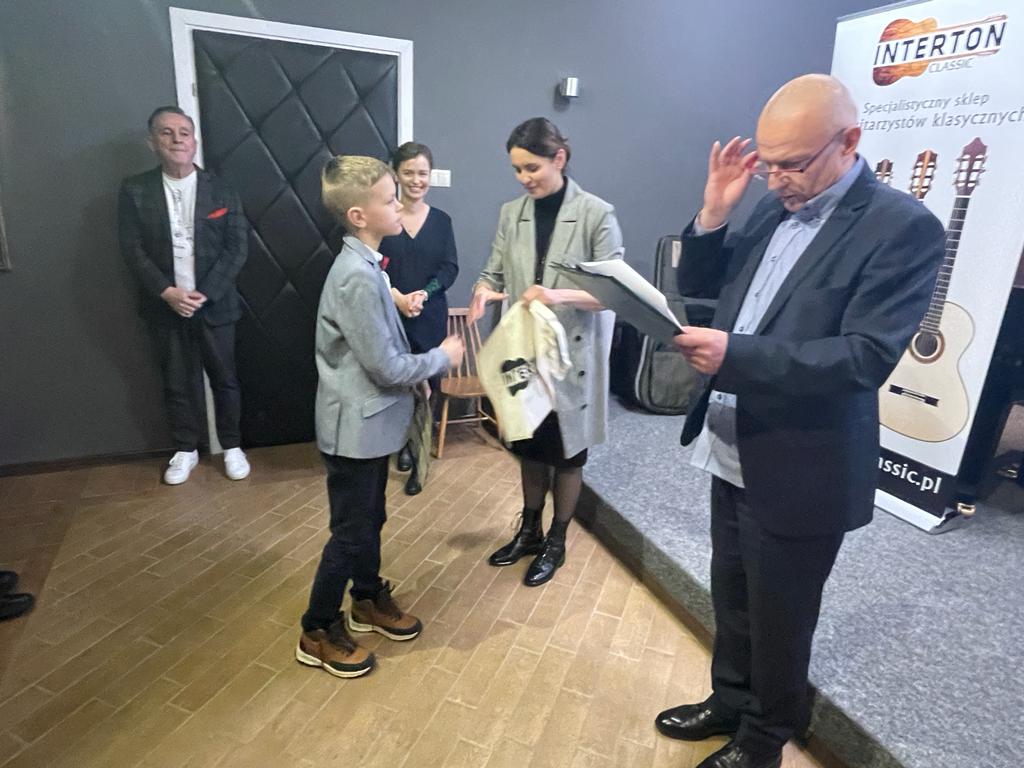 1 grudnia 2022 r. w naszej szkole odbył się VI Festiwal Polskiej Muzyki Gitarowej "Współczesna muzyka gitarowa". W przesłuchaniach konkursowych w 3 kategoriach wiekowych wzięło udział 25 uczniów, w tym trzech reprezentantów naszej szkoły: Julia Kajzer kl. 2/6 i Maja Kaczyńska kl. 3/6 - uczennice p. Anny Bukowskiej oraz Aleksander Wanta kl. 1/4 - uczeń p. Antoniego Jędrzejewskiego. Uczestników oceniało jury w składzie: prof. Mirosław Drożdżowski - przewodniczący jury, dr Monika Dżuła-Radkiewicz, mgr Magdalena Jenda-Kujawa. Pełne wyniki znajdują się w zakładce festiwalu. A nasz uczeń - Aleksander Wanta - otrzymał WYRÓŻNIENIE. Gratulujemy!!
