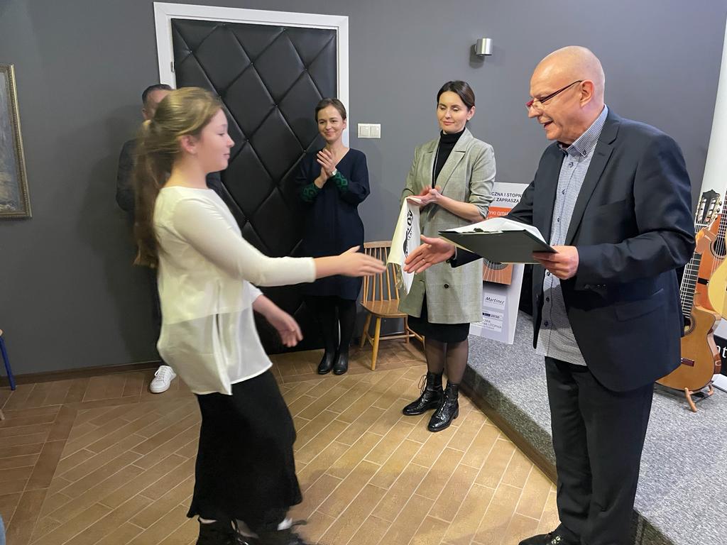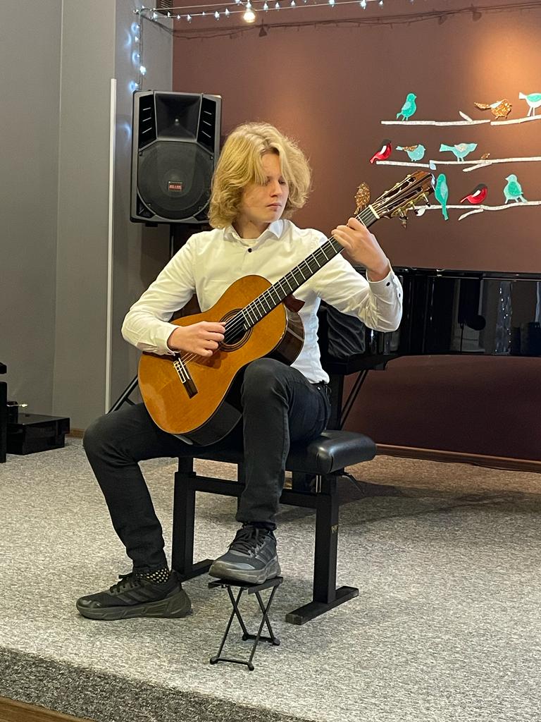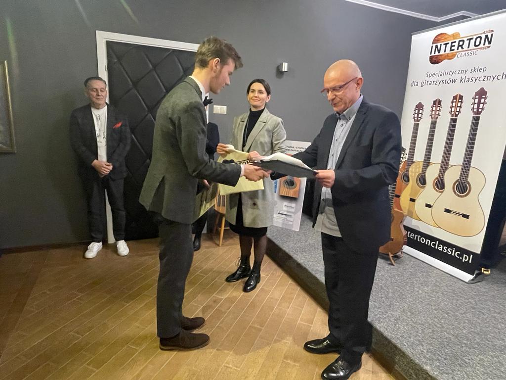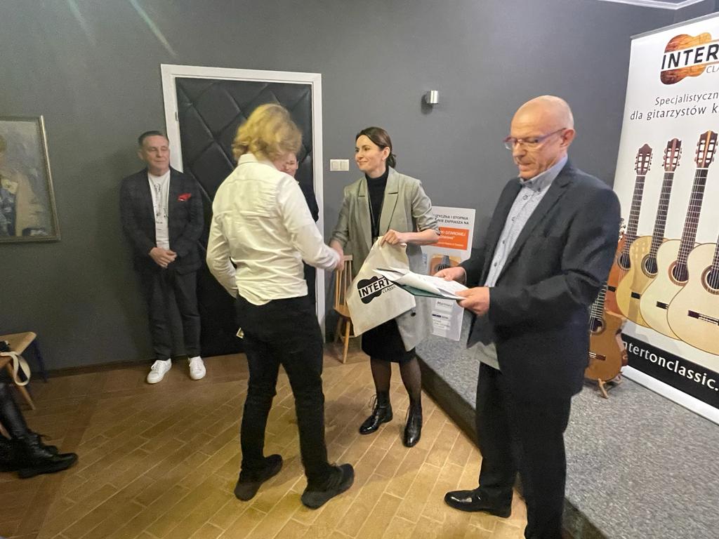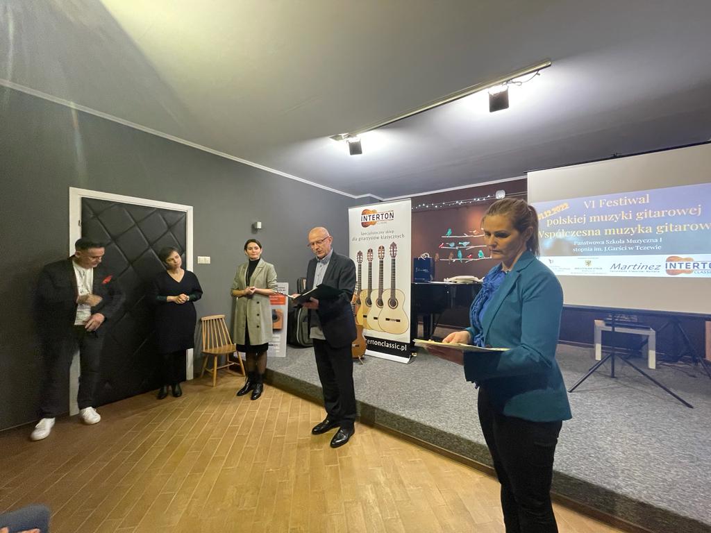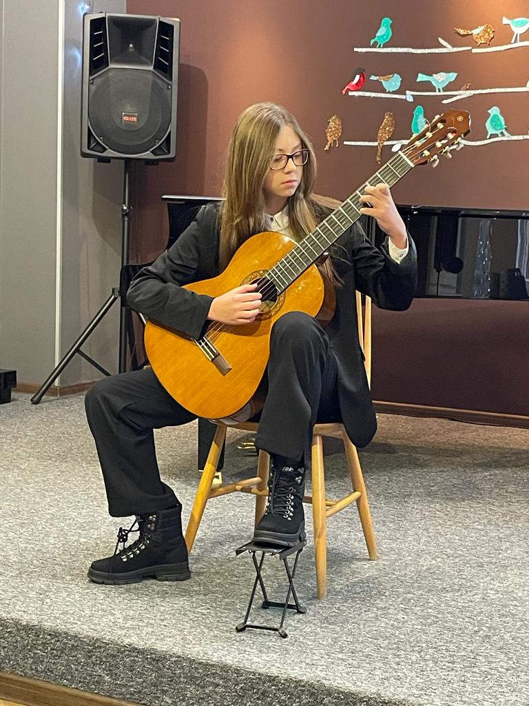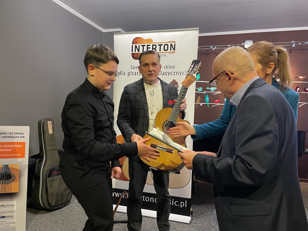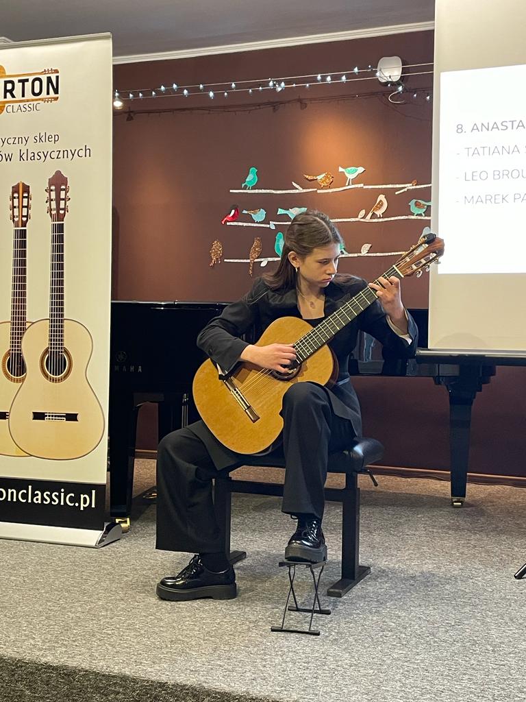 1 grudnia 2022 r. w naszej szkole odbył się VI Festiwal Polskiej Muzyki Gitarowej "Współczesna muzyka gitarowa". W przesłuchaniach konkursowych w 3 kategoriach wiekowych wzięło udział 25 uczniów, w tym trzech reprezentantów naszej szkoły: Julia Kajzer kl. 2/6 i Maja Kaczyńska kl. 3/6 - uczennice p. Anny Bukowskiej oraz Aleksander Wanta kl. 1/4 - uczeń p. Antoniego Jędrzejewskiego. Uczestników oceniało jury w składzie: prof. Mirosław Drożdżowski - przewodniczący jury, dr Monika Dżuła-Radkiewicz, mgr Magdalena Jenda-Kujawa. Pełne wyniki znajdują się w zakładce festiwalu. A nasz uczeń - Aleksander Wanta - otrzymał WYRÓŻNIENIE. Gratulujemy!!