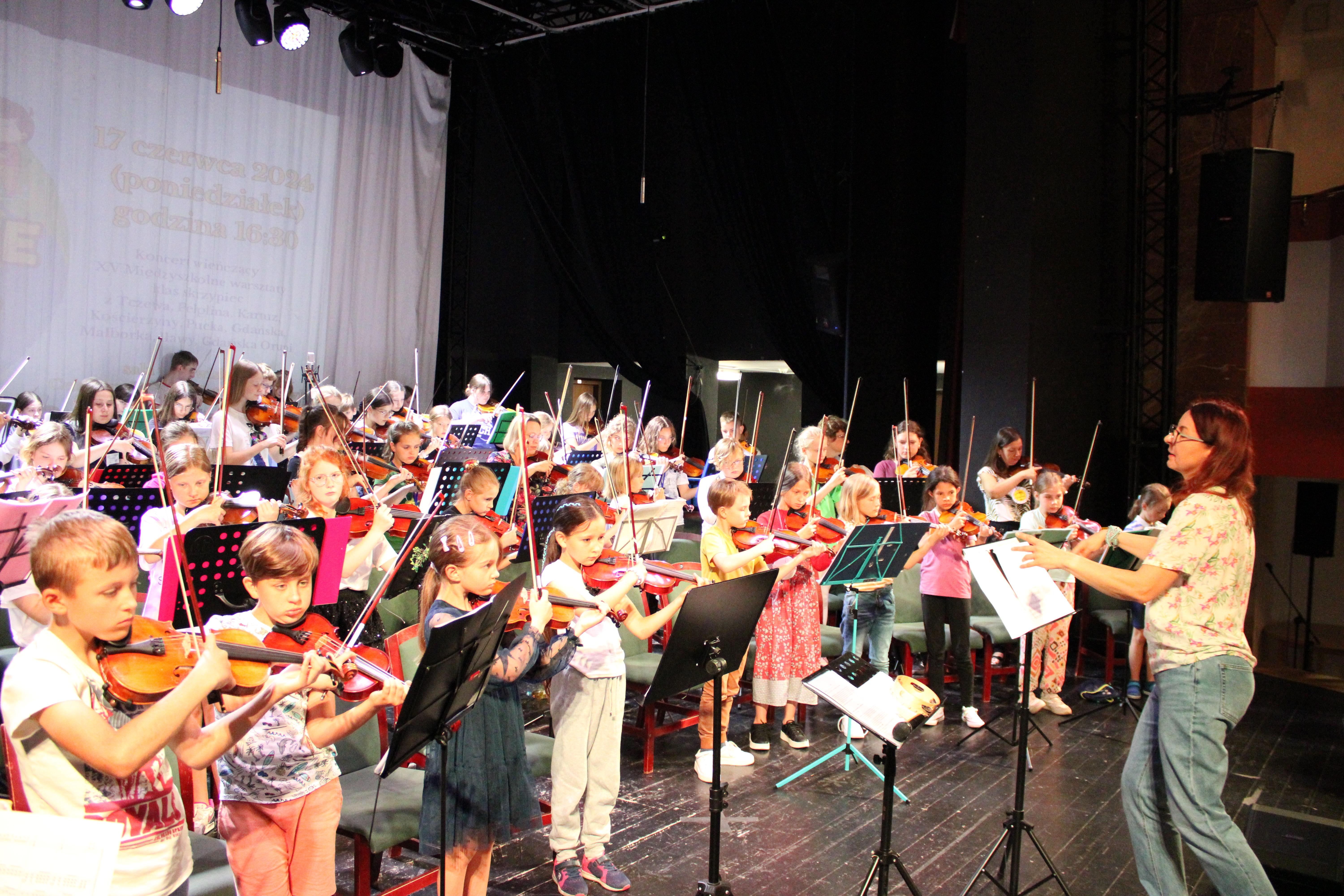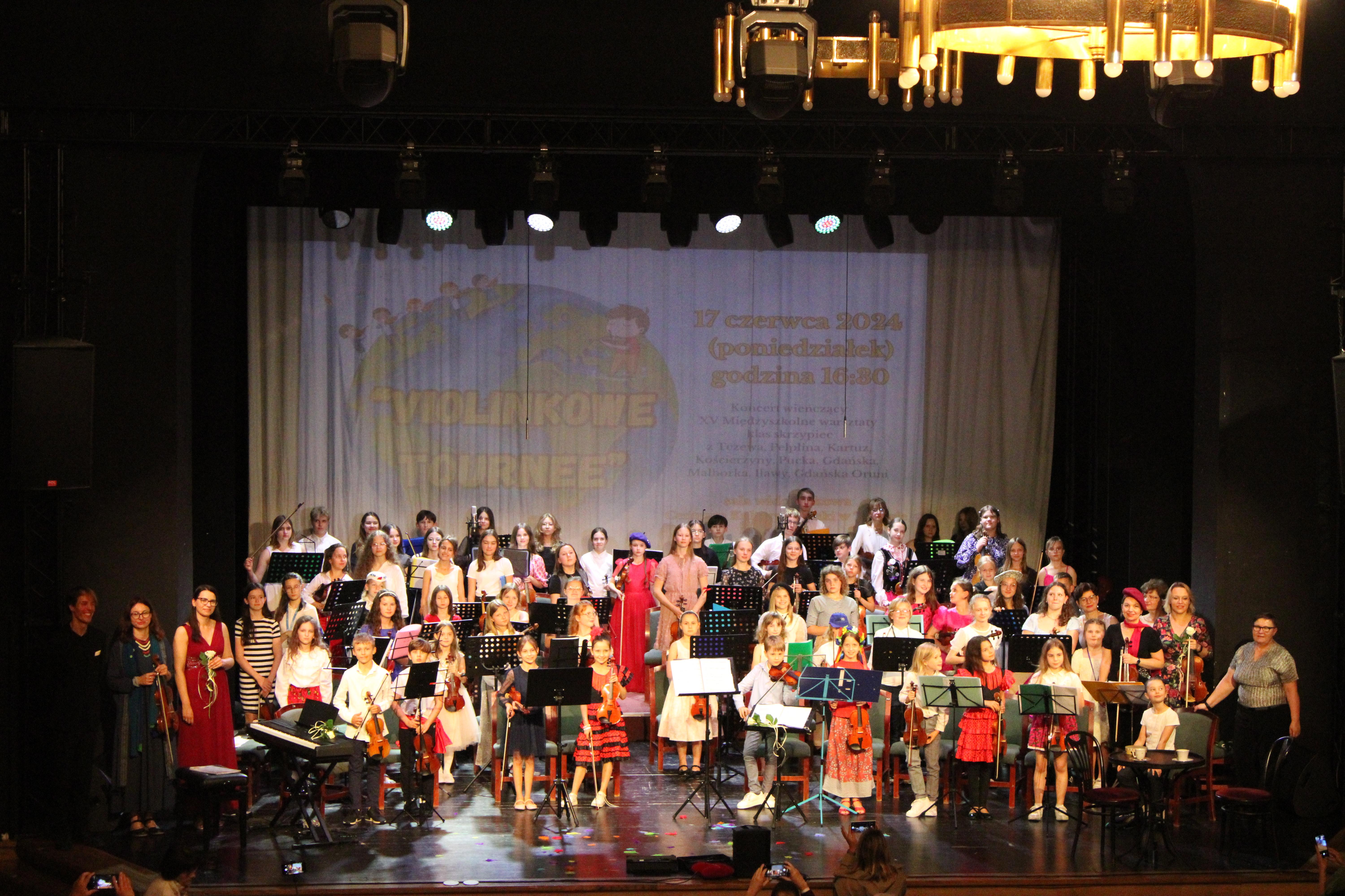 17 czerwca 2024 r. w sali widowiskowej Centrum Kultury i Sztuki w Tczewie odbył się Koncert wieńczący XV Międzyszkolne warsztaty klas skrzypiec z Tczewa, Pelplina, Kartuz, Kościerzyny, Pucka, Gdańska, Malborka, Iławy i Gdańska Oruni. Tym razem 73 skrzypków wraz z 9 nauczycielkami zabrali nas w muzyczną podróż po świecie prezentując muzykę klasyczną, operową, rozrywkową, a nawet klezmerską - było to "Violinkowe tournee". Spektakl muzyczno-teatralny był znakomitym prezentem dla tczewskiej publiczności na koniec roku szkolnego. Publiczność wypełniła salę po brzegi i żywo dopingowała młodych skrzypków. Gratulacje dla wszystkich współtworzących ten fantastyczny projekt.