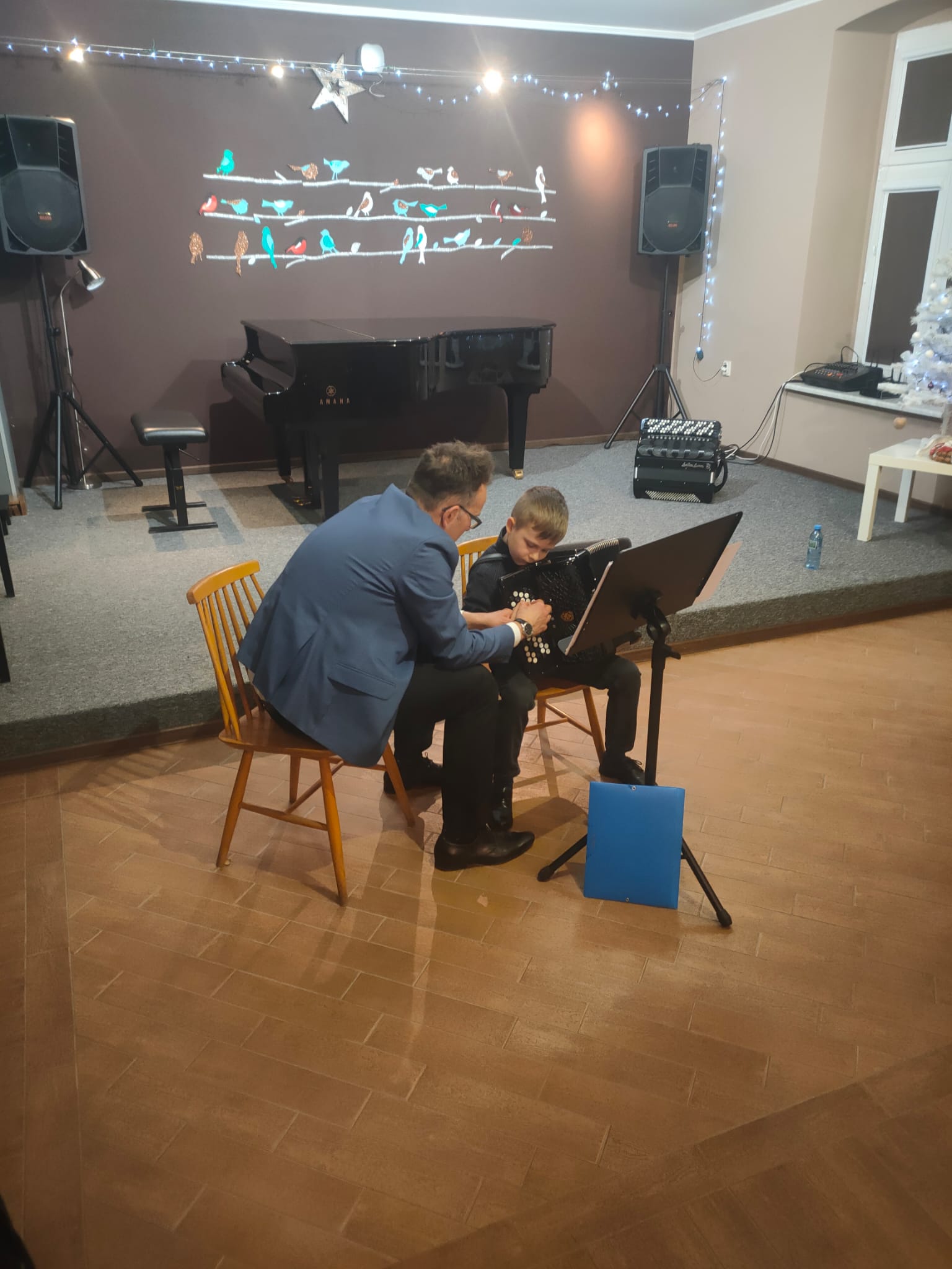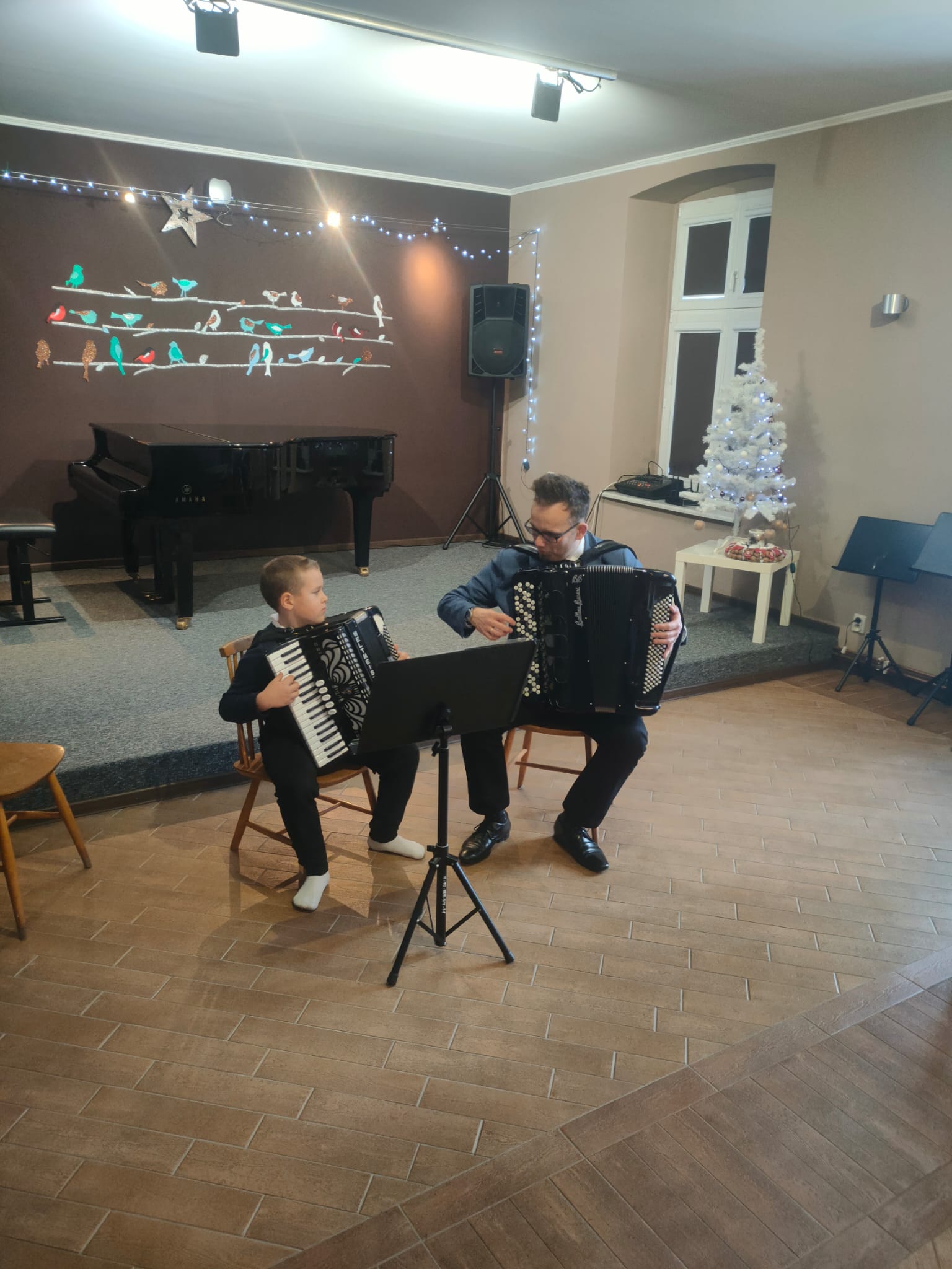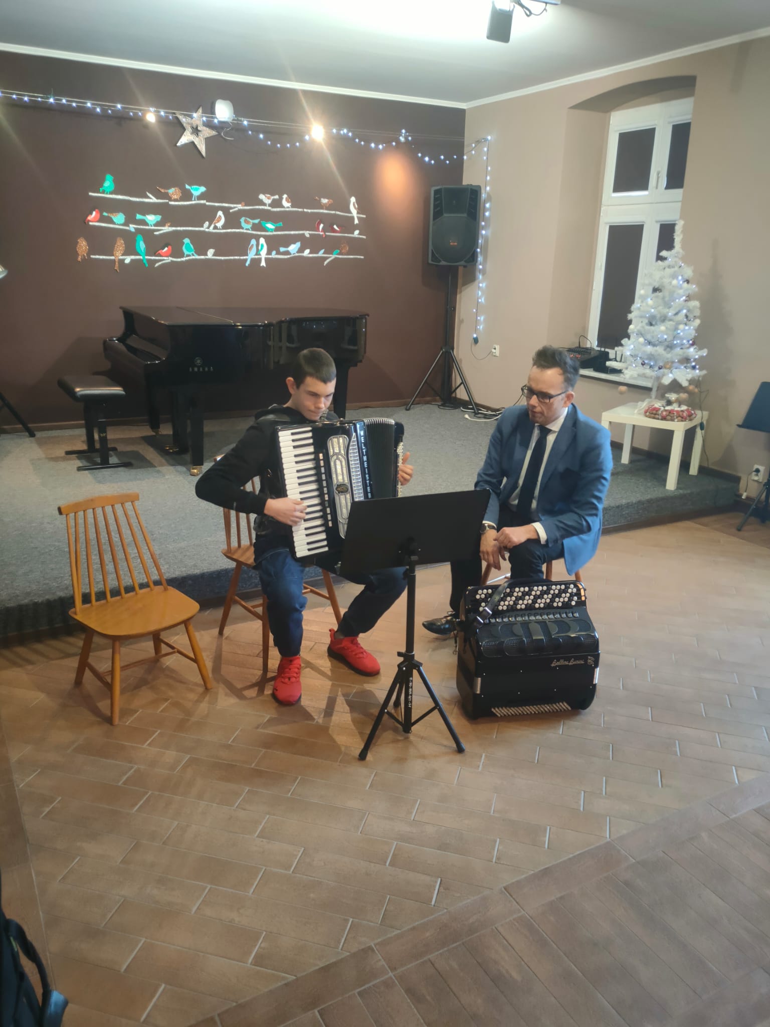 16 stycznia 2024 r. uczniowie z klasy akordeonu p. Marka Gleinerta i p. Pawła Ratajka wzięli udział w warsztatach akordeonowych, które odbyły się w naszej szkole. Zajęcia prowadził dr hab. Paweł Zagańczyk. Po całym dniu lekcji z mistrzem, uczniowie zagrali wieczorem Koncert, gdzie mogli pokazać wszystko czego się nauczyli. Dziękujemy profesorowi za wszystkie wskazówki do pracy i gratulujemy uczniom postępów.