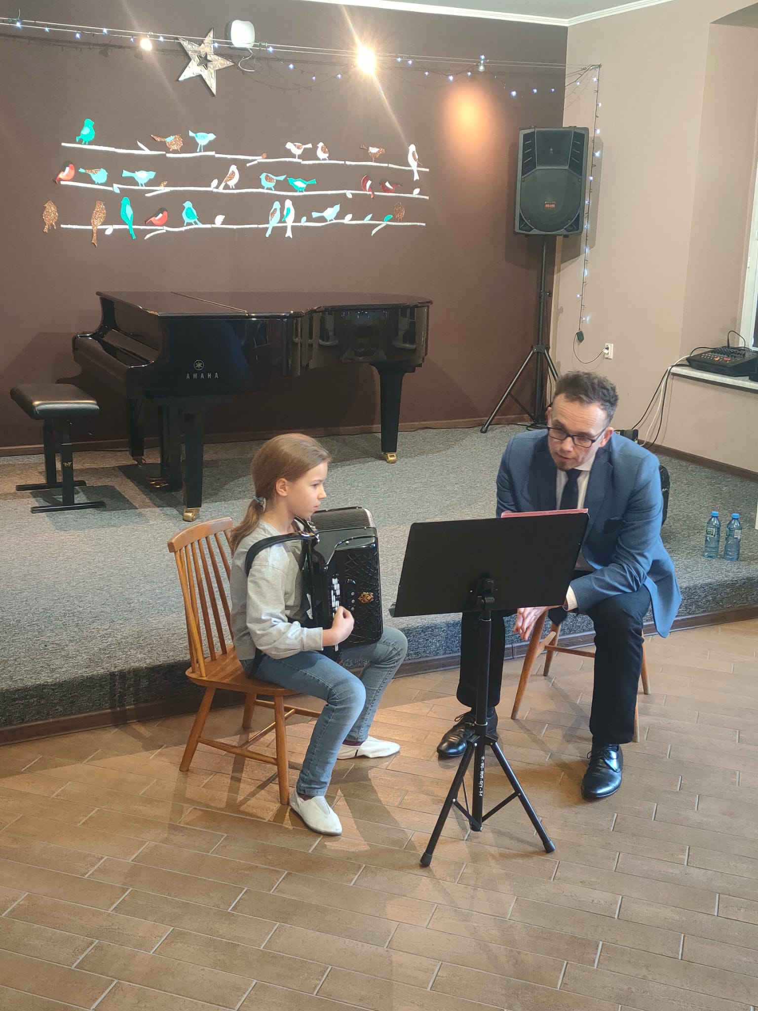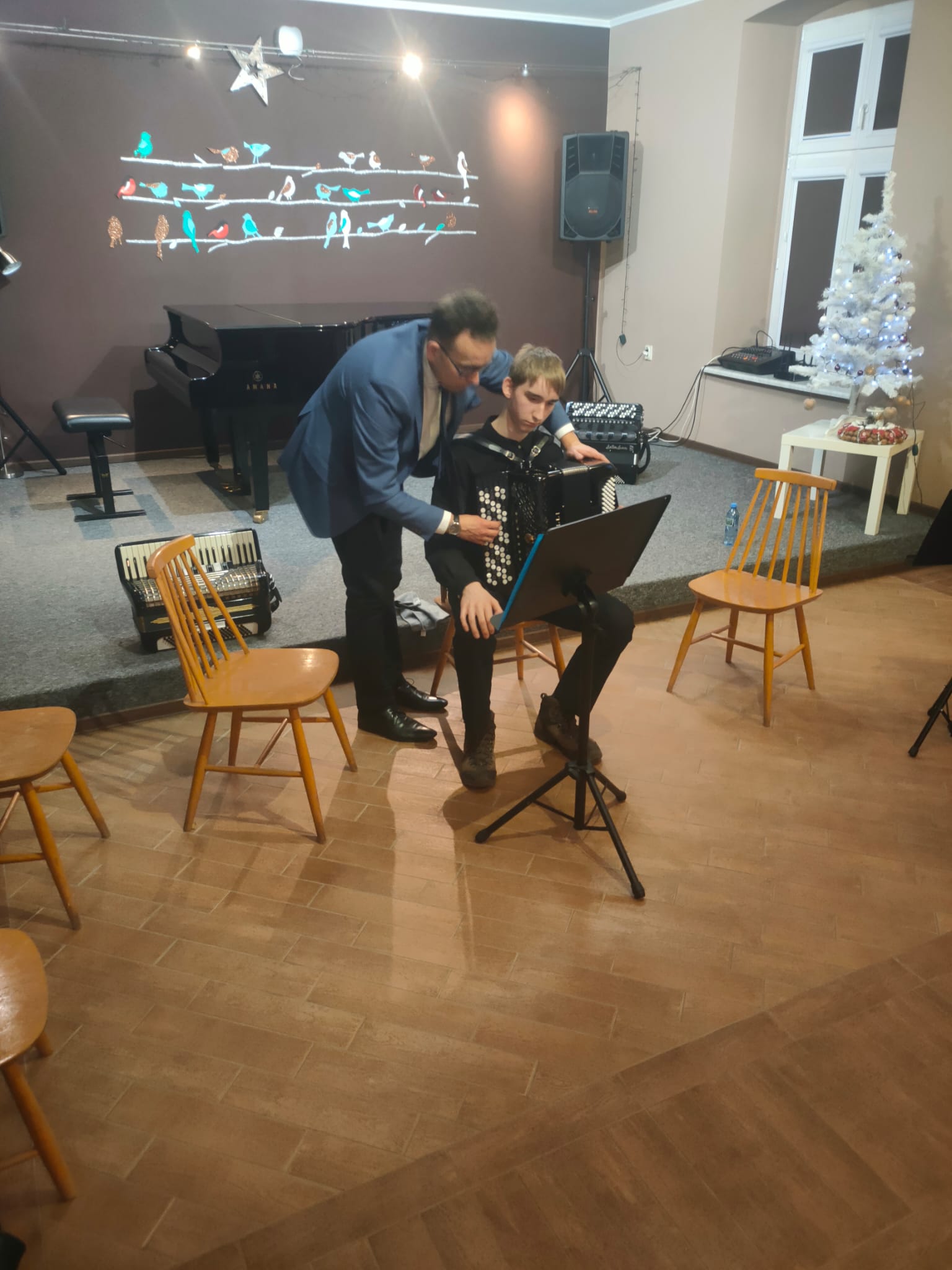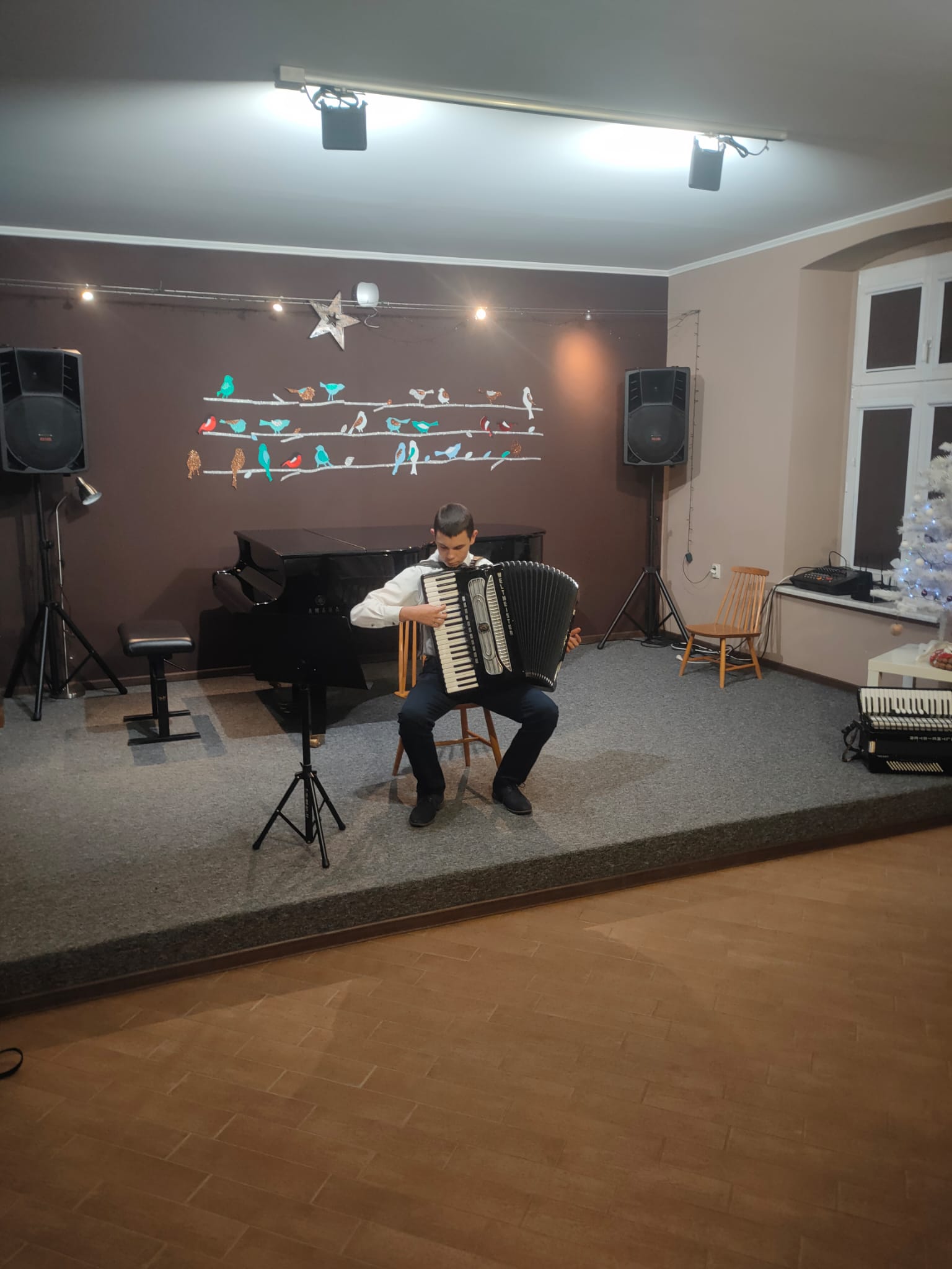 16 stycznia 2024 r. uczniowie z klasy akordeonu p. Marka Gleinerta i p. Pawła Ratajka wzięli udział w warsztatach akordeonowych, które odbyły się w naszej szkole. Zajęcia prowadził dr hab. Paweł Zagańczyk. Po całym dniu lekcji z mistrzem, uczniowie zagrali wieczorem Koncert, gdzie mogli pokazać wszystko czego się nauczyli. Dziękujemy profesorowi za wszystkie wskazówki do pracy i gratulujemy uczniom postępów.