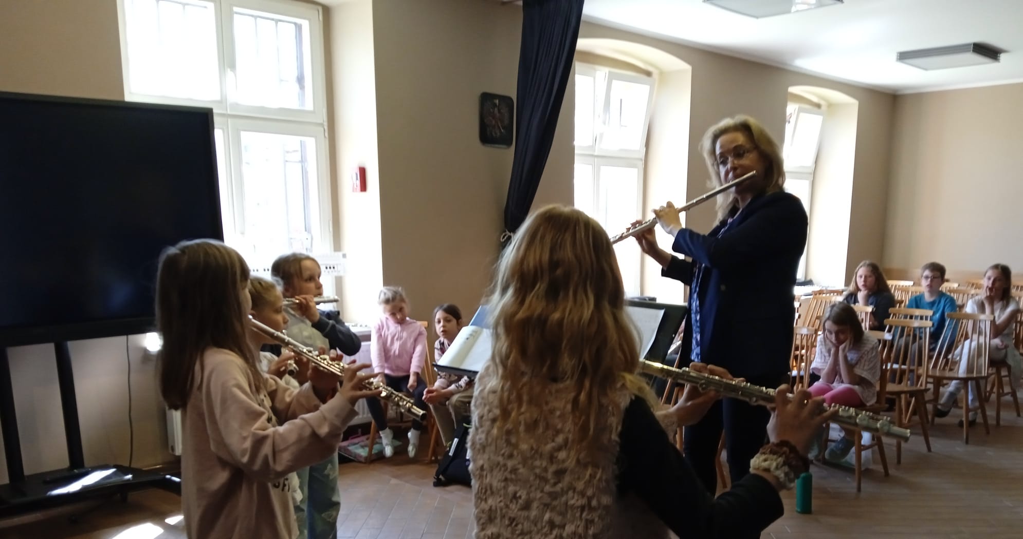 10 maja w naszej szkole odbyły się warsztaty fletowe dla uczniów z PSM Tczew i PSM Gdańsk Orunia. Prowadzącą była dr Adrianna Lis, dzięki której nasi uczniowie poznali mnóstwo nowych ćwiczeń, które wspomagają oddech, postawę ciała i różnych trików muzycznych, dzięki którym uczniowie mogą ubogacić swoją grę.