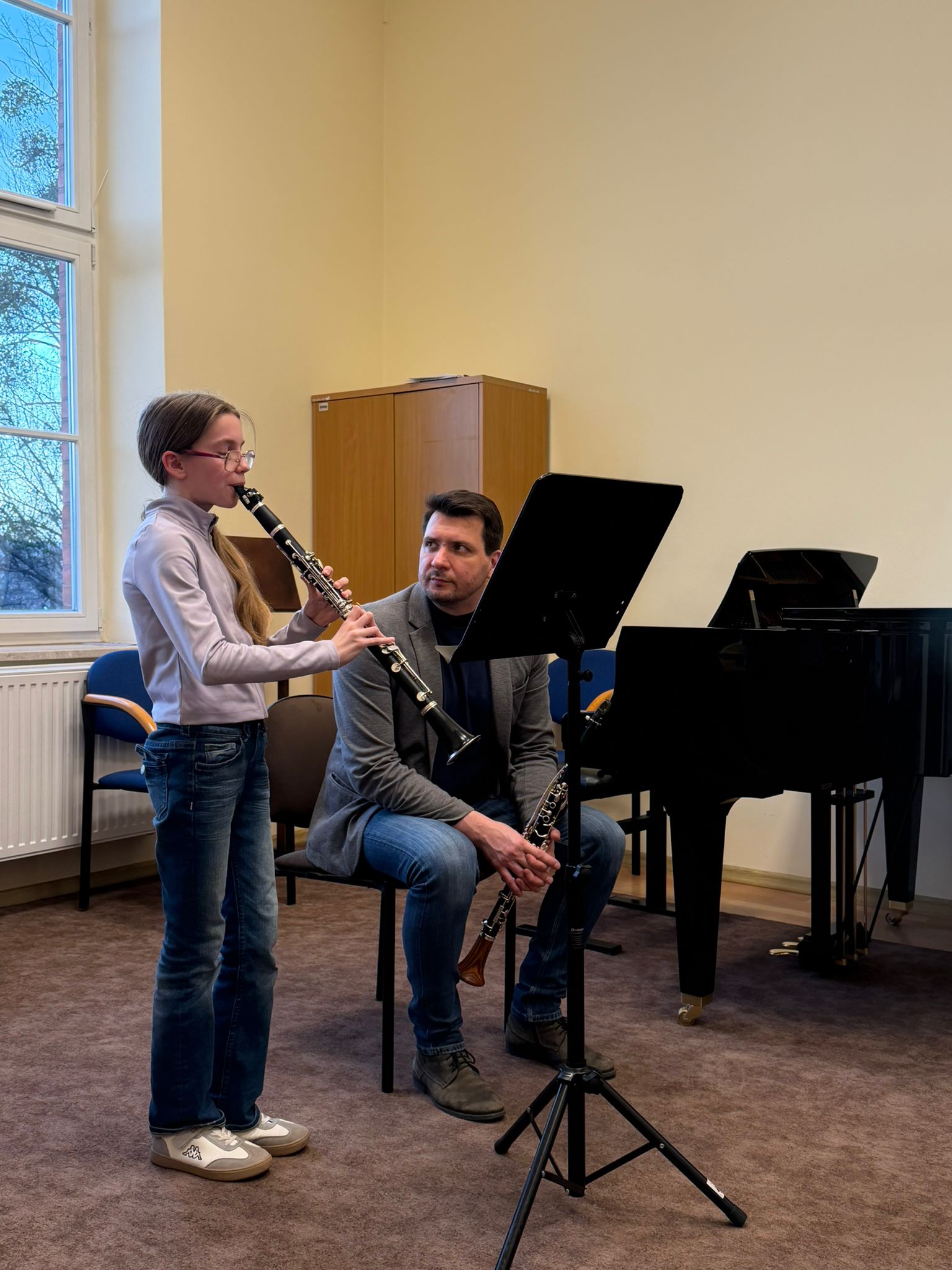 Aby świetnie przygotować się do koncertów, konkursów i innych występów, nasi uczniowie nie tylko samodzielnie wytrwale ćwiczą każdego dnia, ale też poza regularnymi lekcjami w szkole, biorą udział w warsztatach i lekcjach mistrzowskich. MARTA NETKA - klarnecistka, uczennica mgr Aleksandry Głowackiej, 23 marca 2026 wzięła udział w warsztatach klarnetowych w ramach V Międzynarodowego Festiwalu "Gdańskie Dnia Klarnetu i Saksofonu". Impreza odbywała się w Akademii Muzycznej w Gdańsku, a Marta miała możliwość prazy z prof. dr hab. Grzegorzem Wieczorkiem oraz dr hab. Andrzejem Wojciechowskim. BRAWO Marta!