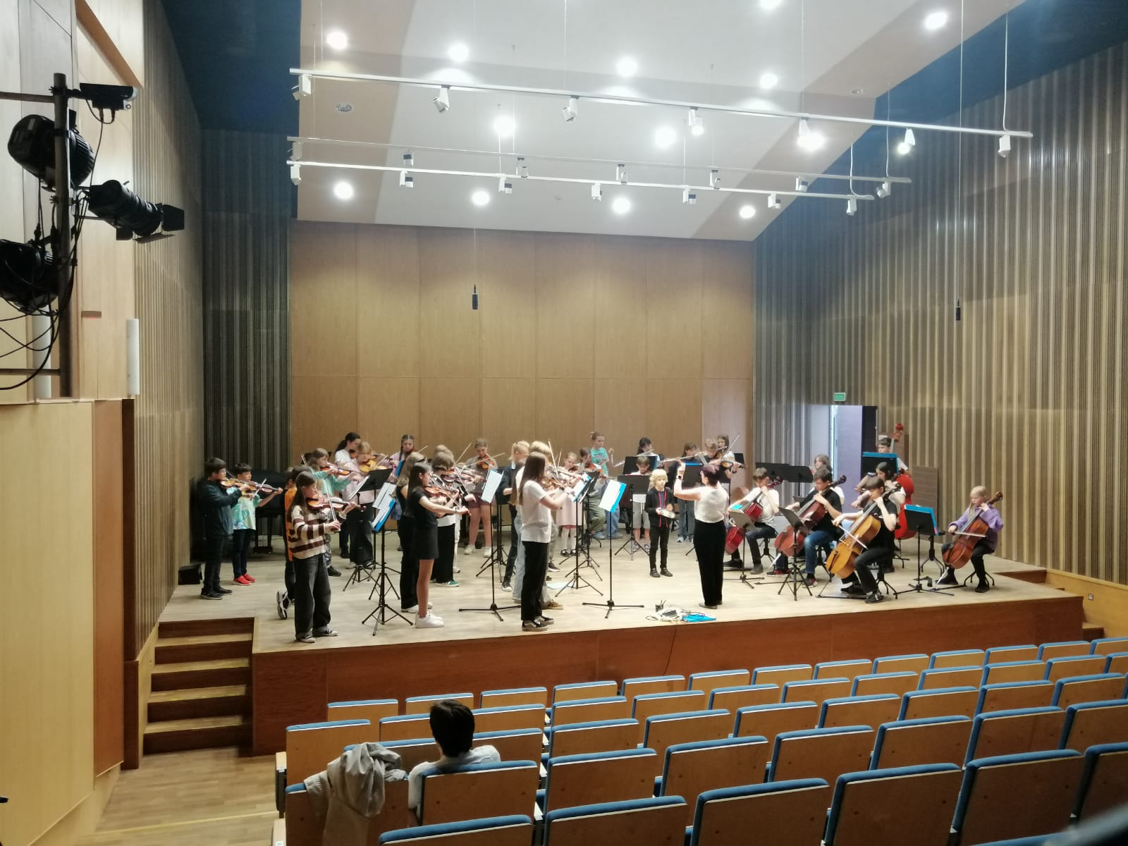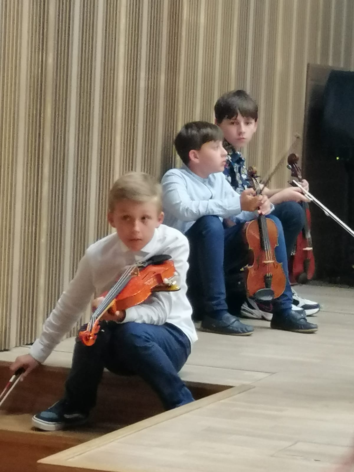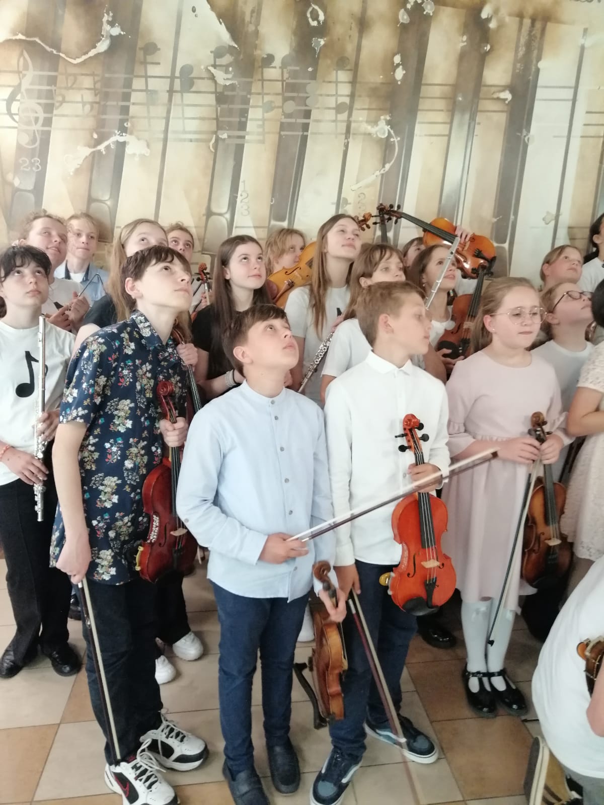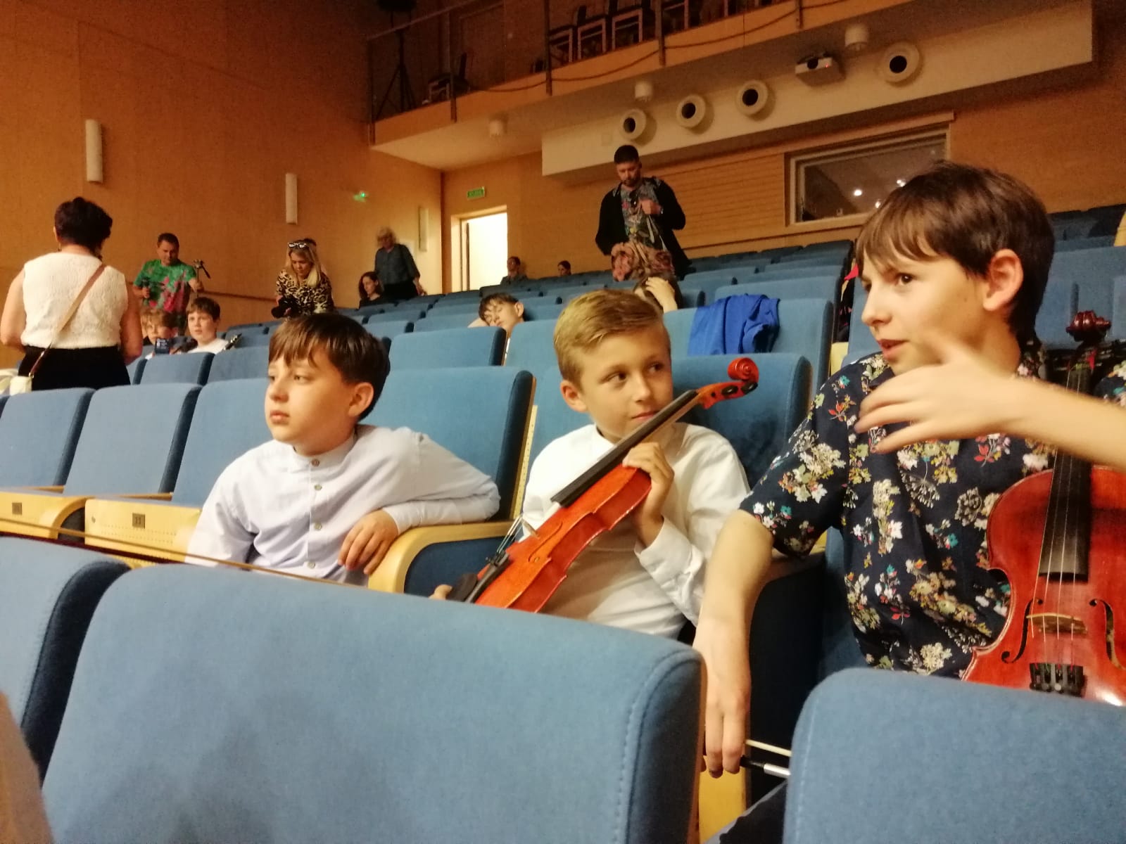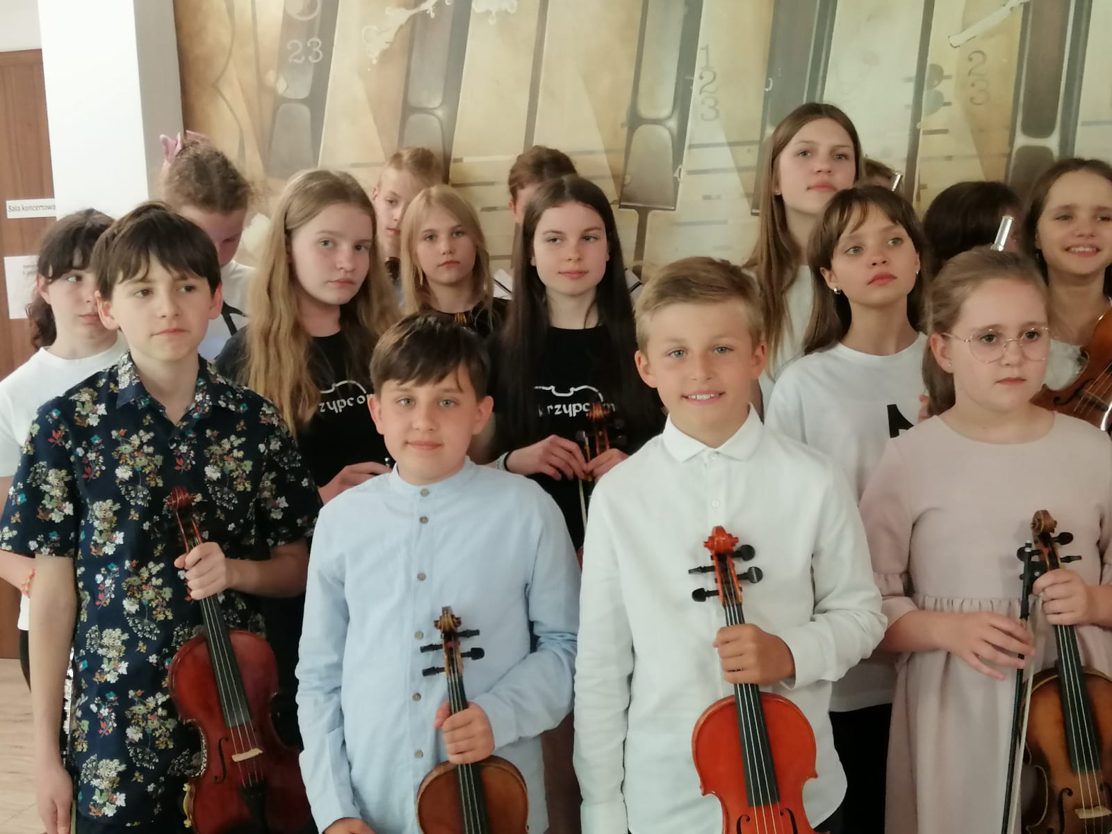 13 czerwca 2025 r. trójka naszych skrzypków: Franek, Filip i Kajetan reprezentowała naszą szkołę na warsztatach Gdyńskiej Kameralistyki Smyczkowej. W gdyńskiej szkole muzycznej pod okiem dyrygentki p. Katarzyny Doliwy-Dobrowolskiej mieli okazję zagrać w prawdziwej dziecięcej orkiestrze wzbogaconej o sekcję dętą oraz perkusję. Orkiestra składała się z dzieci i młodzieży z kilku różnych szkół muzycznych (Gdynia, Gdańsk, Gdańsk Orunia, Tczew, Pabianice). Dla Franka, Filipa i Kajtka było to cenne doświadczenie i świetnie się zaprezentowali na koncercie wieńczącym warsztaty. Na chłopców po intensywnej pracy z instrumentem czekały niespodzianki: zabawa na placu zabaw, pizza, lody oraz koncert szwedzkiej grupy bębniarzy, wykonującej rytmiczną muzykę afrykańską. Uczniów doskonale do występu przygotowały p. Marta Kołodziejska-Kacprzak i p. Aldona Śmietańska, która również zorganizowała wyjazd uczniów i opiekę. Opiekunem wycieczki była także p. Ludmiła Strzałkowska. Paniom nauczycielkom dziękujemy za świetne przygotowanie uczniów, a chłopcom gratulujemy występu!!