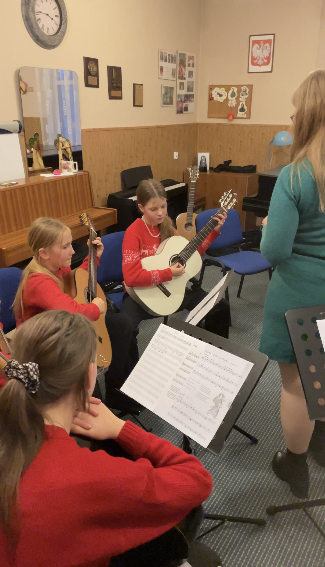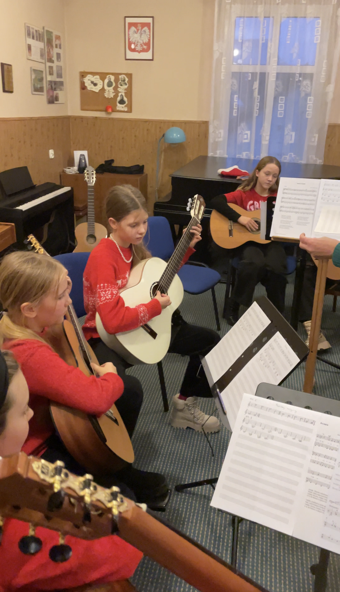 W mikołajkową środę w Filii rozbrzmiały pierwsze dźwięki kolęd. Swoje warsztaty kolęd odbyli gitarzyści, a podczas jednego spotkania nauczyli się i zagrali dwie piękne kolędy "Lulajże Jezuniu" oraz "Pójdźmy wszyscy do stajenki". Bardzo dziękujemy Pani Ani Bukowskiej za poprowadzenie zajęć.