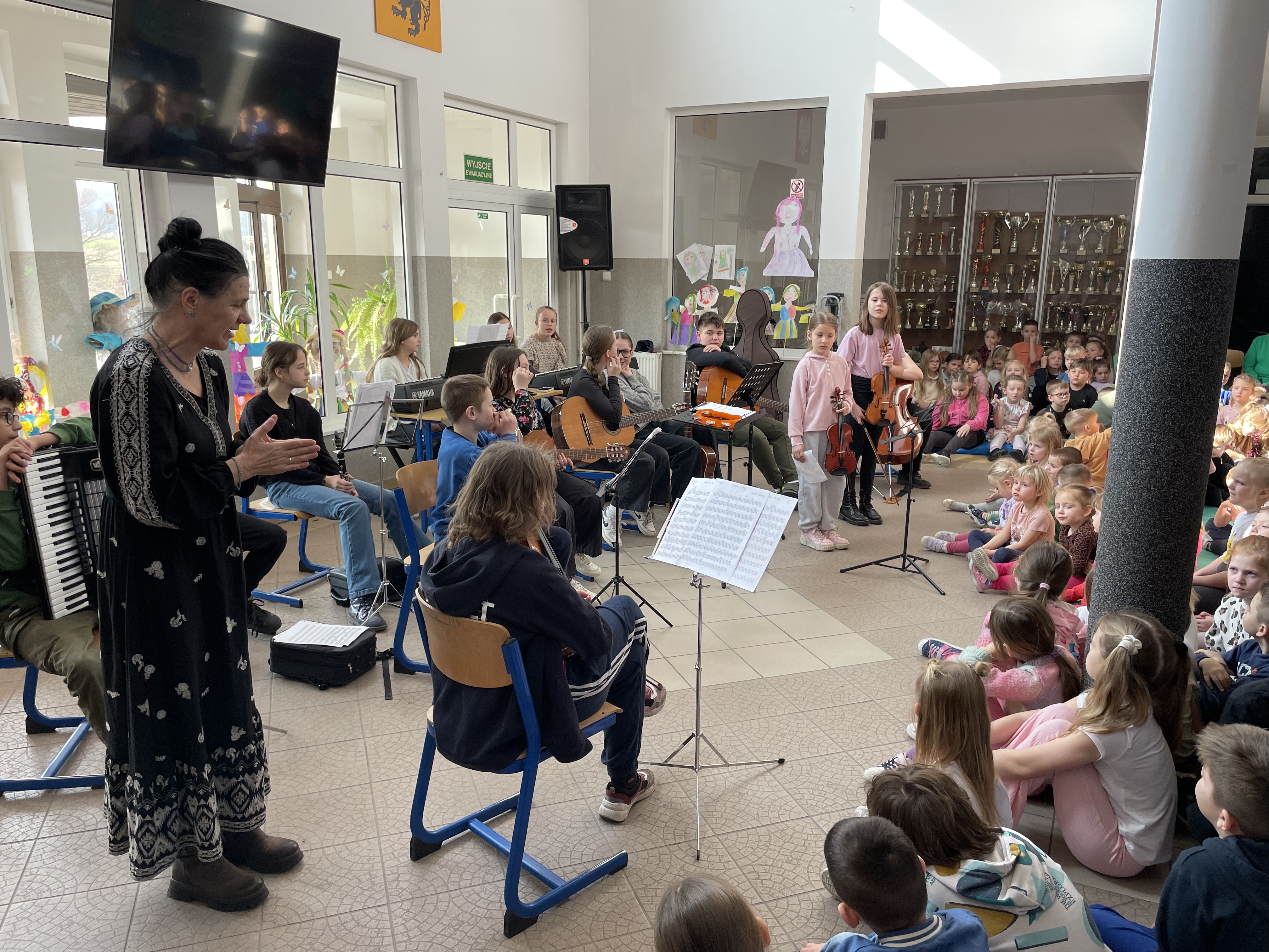 Finałem imprezy (prócz oczywiście zielonej nocy 😉) był koncert w pobliskiej szkole podstawowej, podczas którego licznie przybyła młodzież usłyszała muzyczne symboliczne przejście od zimy do wiosny namalowane niegdyś przez Antonio Vivaldiego w "Czterech porach roku".