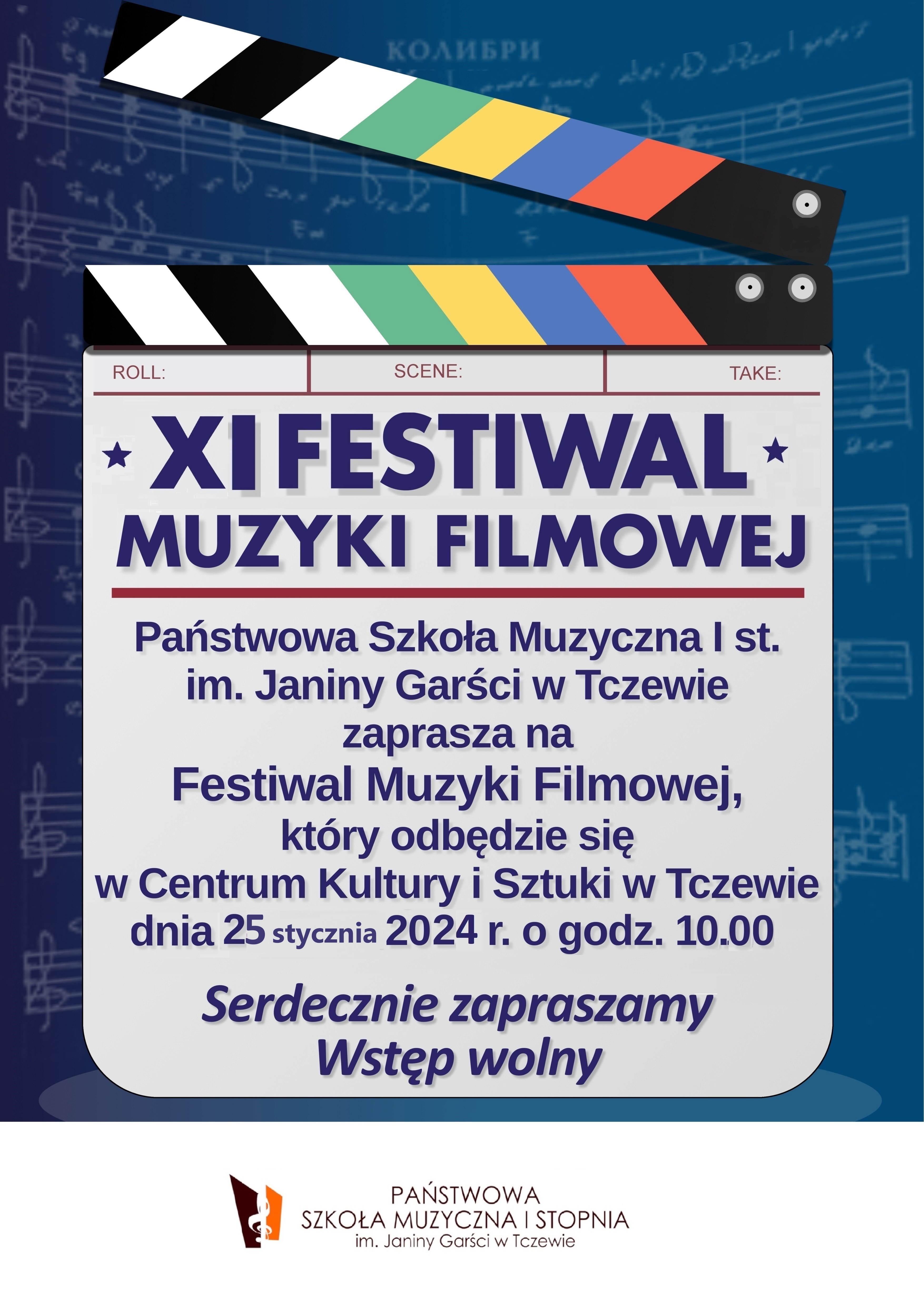 Serdecznie zapraszamy na XI Festiwal Muzyki Filmowej, który odbędzie się 25 stycznia 2024 r. Przesłuchania konkursowe rozpoczynają się o godzinie 10:00. Szczegóły w zakładce konkursowej - kliknij.