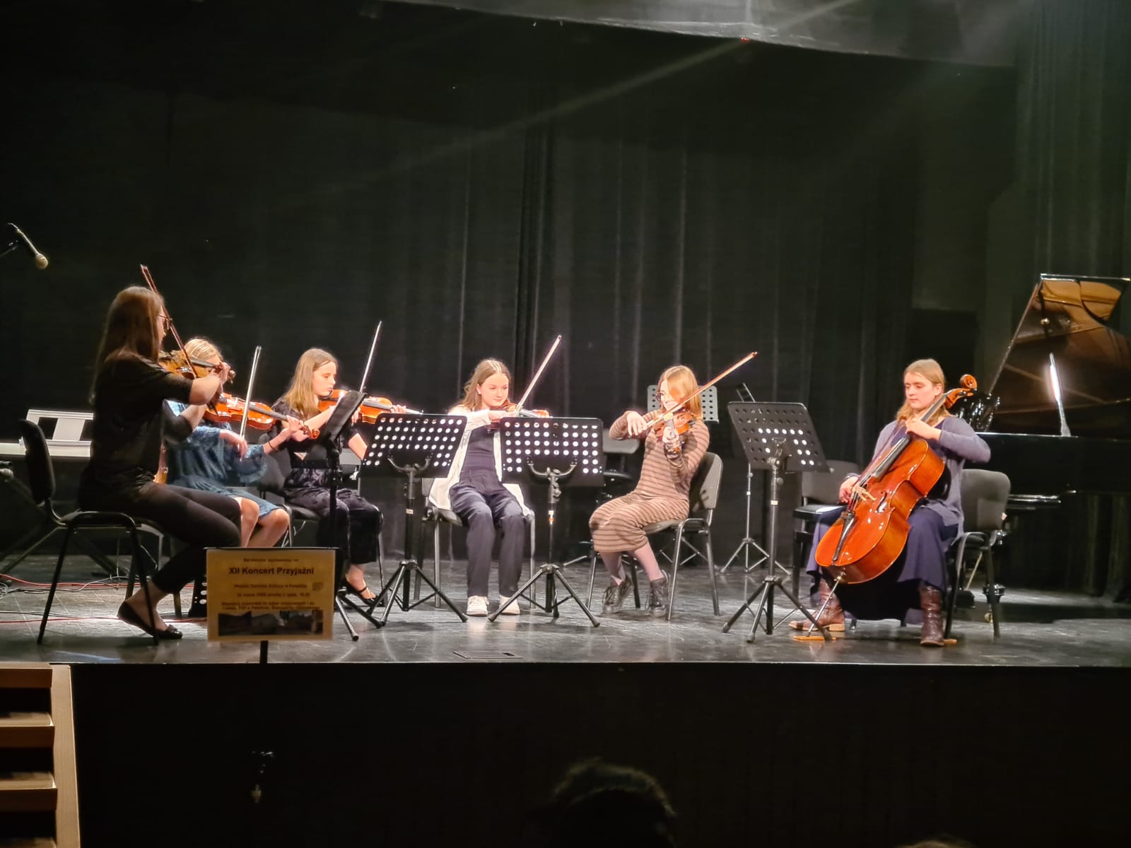 20 marca 2024 w Miejskim Ośrodku Kultury w Pelplinie już po raz 12 spotkali się uczniowie i nauczyciele z trzech zaprzyjaźnionych szkół I stopnia. Uczniowie z Tczewa, Pelplina i Starogardu Gdańskiego wspaniale zagrali wspólny koncert - XII Koncert Przyjaźni. Pomysłodawcą tego wydarzenia jest p. Alina Dombrowska, która poprowadziła koncert. Naszą szkołę reprezentowali: Jerzy Kiedrowski, Konstanty Liss, p. Piotr Kowalkowski (trębacze), Błażej Kinder i Aleksander Wanta (gitarzyści), Kornelia Dunajska i Julita Zduńczyk (pianistki) oraz p. Marta Kołodziejska-Kacprzak, Oliwia Lubowiedzka, Martyna Gorlikowska, Agata Sikorska, Iga Bakuła (skrzypaczki). Wszystkim uczestnikom gratulujemy.