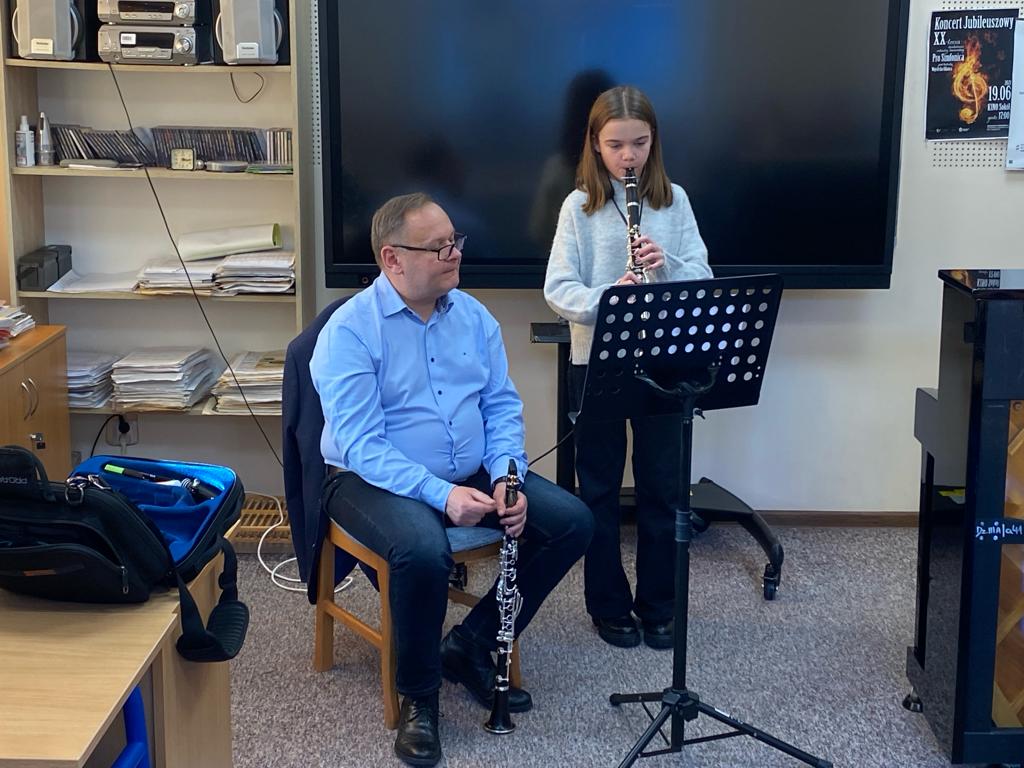 Amelia Szwoch i Kacper Woźniak - uczniowie p. Przemysława Juchniewicz wzięli udział w XX Warsztatach Klarnetowych im. prof. Andrzeja Pietrasa i prof. Marka Schillera. Warsztaty odbyły się 27 listopada 2023 r. w PSM I st. w Starogardzie Gdańskim. Lekcje mistrzowskie odbywały się pod okiem profesorów z gdańskiej Akademii Muzycznej - prof. Bogdana Ocieszaka, dr hab. Grzegorza Wieczorka i dr hab. Andrzeja Wojciechowskiego. Gościnnym prowadzącym w tej edycji warsztatów był p. Andrzej Zwarycz. Nasi uczniowie świetnie się zaprezentowali i wiele nauczyli. Wielkie brawa dla nich!!