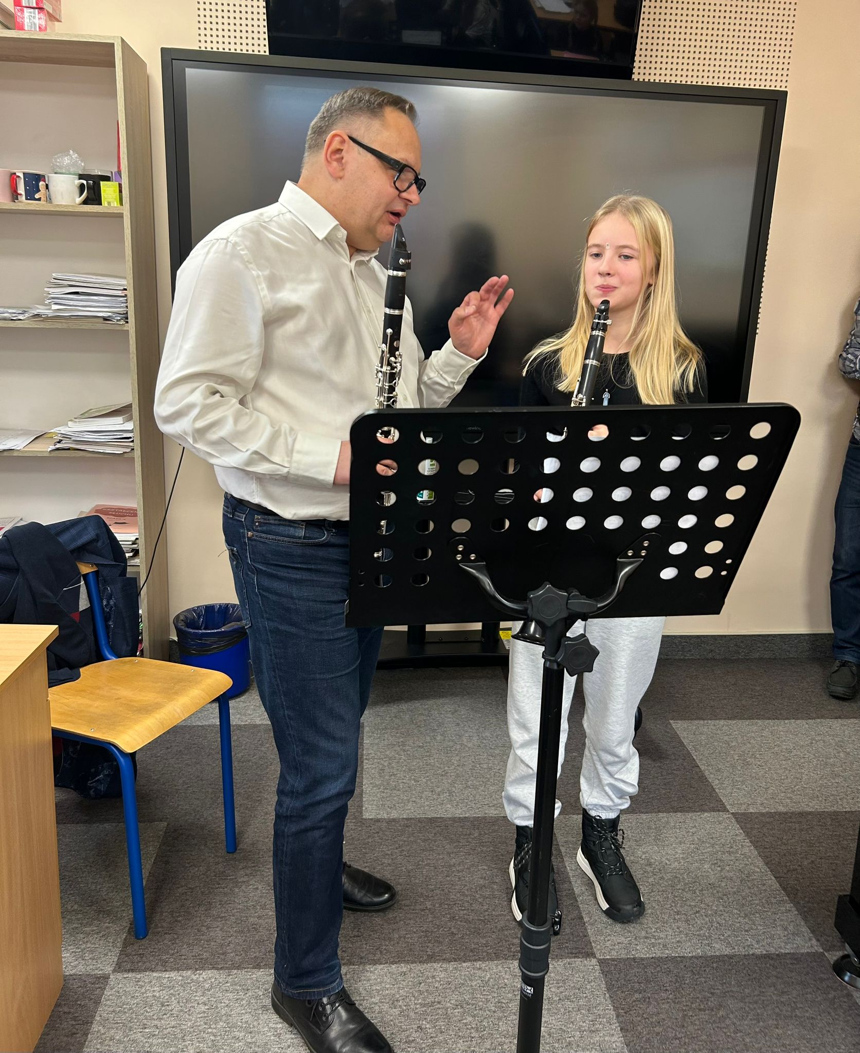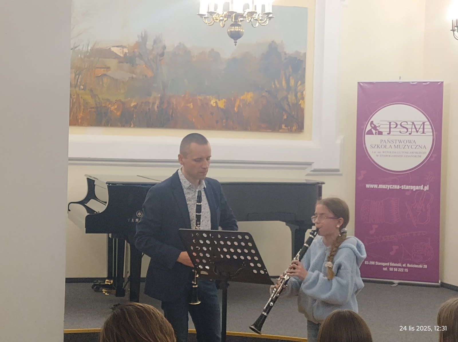 24 listopada 2025 uczniowie klasy klarnetu wraz ze swoją nauczycielką Aleksandrą Głowacką uczestniczyli w XXII warsztatach klarnetowych im. prof. A.Pietrasa i prof.M.Schillera w Starogardzie Gdańskim. Pracowali pod okiem dr hab. G.Wieczorka (AM Gdańsk), dr hab. A.Wojciechowskiego (AM Gdańsk), prof. dr hab. B.Ocieszaka (AM Gdańsk) oraz dr hab. P. Kroczka (AM Poznań). Uczniowie brali udział w lekcjach indywidualnych i grupowych. Na zakończenie warsztatów odbył się koncert orkiestry klarnetowej, podczas którego wszyscy uczestnicy wykonali wspólnie utwór „Rondo alla Turca” W. A. Mozarta.
