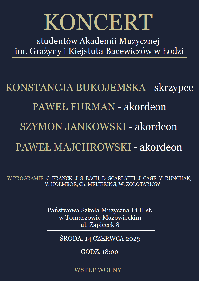 Koncert studentów Akademii Muzycznej z Łodzi 14.06.2023