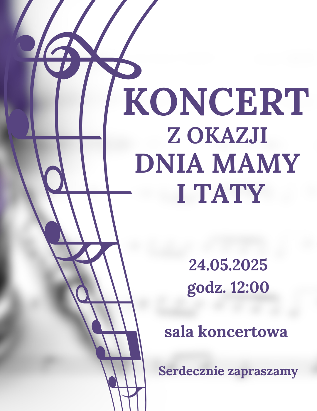 Serdecznie zapraszamy na wyjątkowy koncert z okazji dnia mamy i taty 24 maja 2025 roku (sobota) o godz. 12:00 w sali koncertowej naszej szkoły.