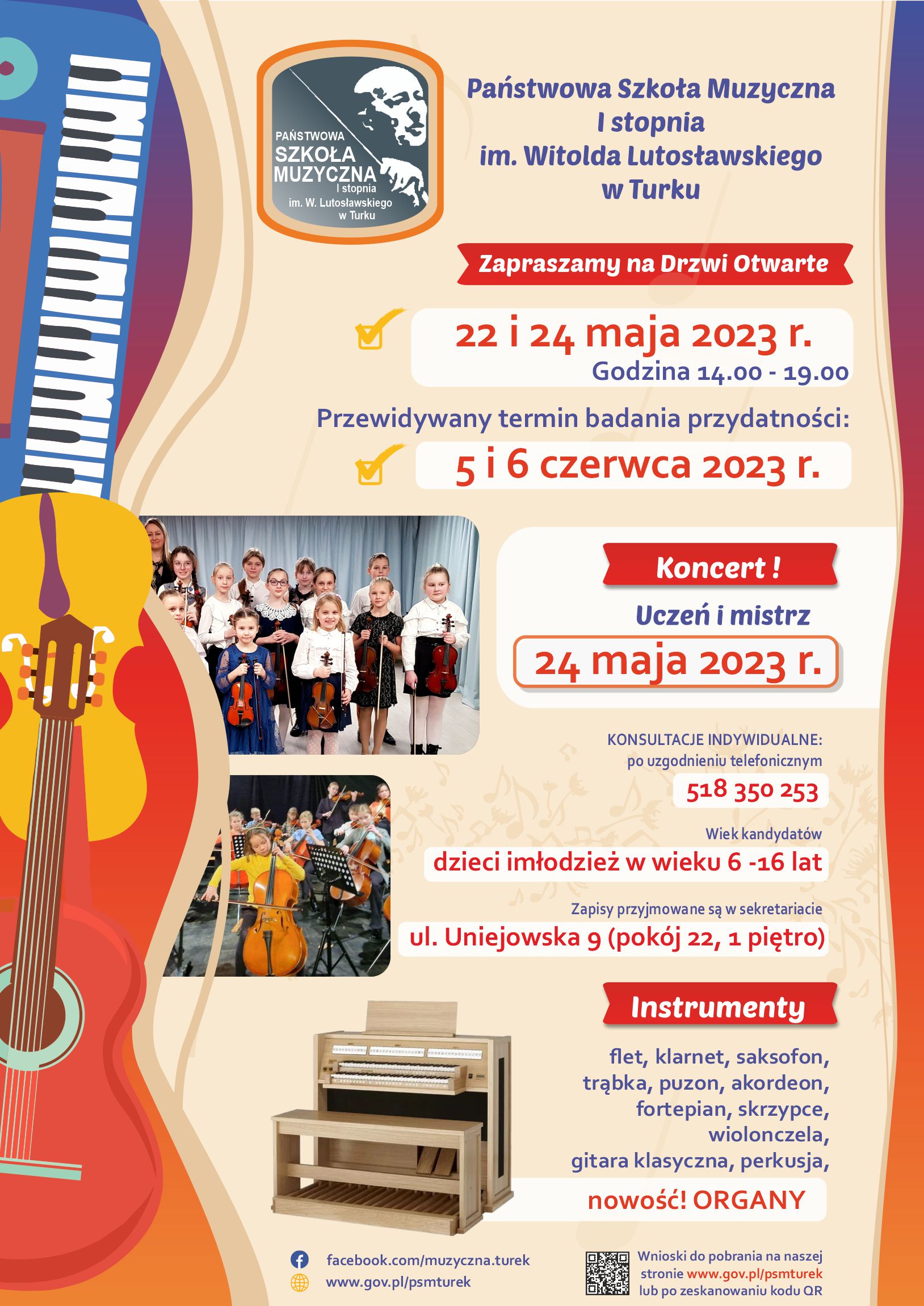 Państwowa Szkoła Muzyczna I stopnia im. Witolda Lutosławskiego w Turku przeprowadza co roku rekrutację kandydatów do klas pierwszych.