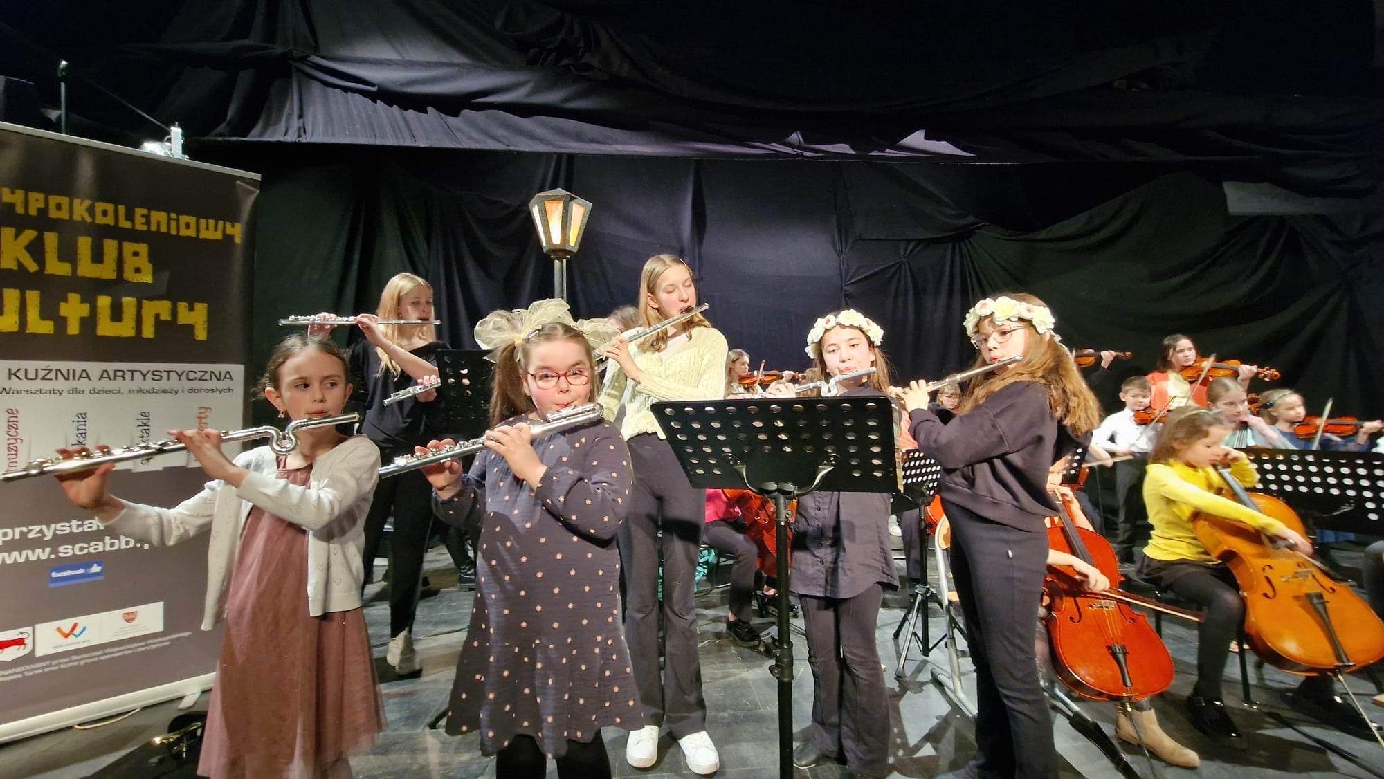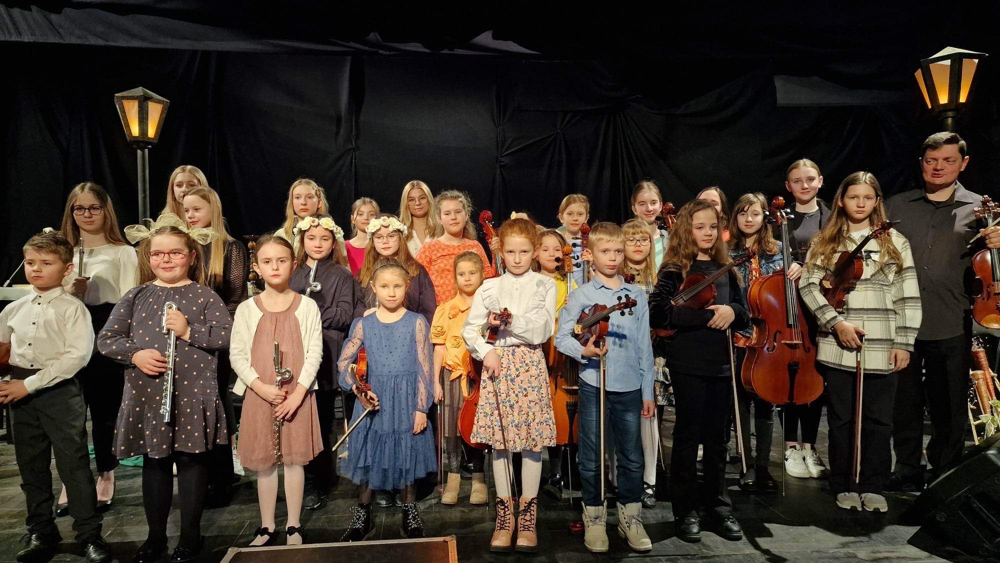 29 marca 2023 r., na Scenie Kameralnej Stowarzyszenia "Przystań", przy wypełnionej po brzegi sali, koncertowo powitaliśmy wiosnę. W koncercie wzięło udział kilkudziesięciu wykonawców - uczniów naszej szkoły. Na scenie wystąpili: soliści (uczniowie klas fortepianu, akordeonu, skrzypiec, fletu i saksofonu), szkolna orkiestra dęta, chór szkolny, zespół skrzypcowy, zespół rytmiki wraz z dyrygentem i solistką - wokalistką oraz orkiestra skrzypcowo - wiolonczelowo - fletowa. Wszyscy pięknie się zaprezentowali, za co publiczność nagradzała ich hojnie brawami.