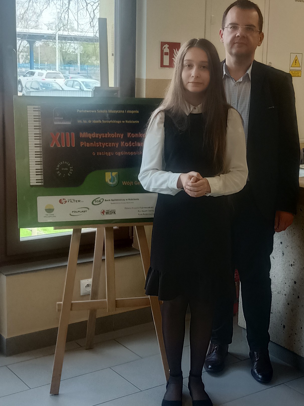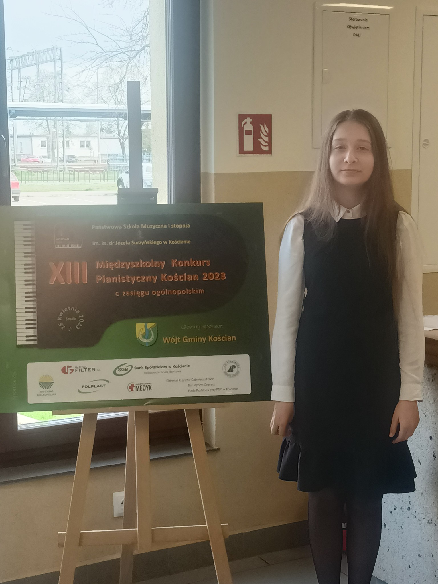 W dniu 26.04.2023r. Karolina Podpora uczennica klasy fortepianu naszej szkoły wzięła udział w XIII Międzyszkolnym Konkursie Pianistycznym o zasięgu ogólnopolskim w PSM I st. im. ks. dr J. Surzyńskiego w Kościanie.