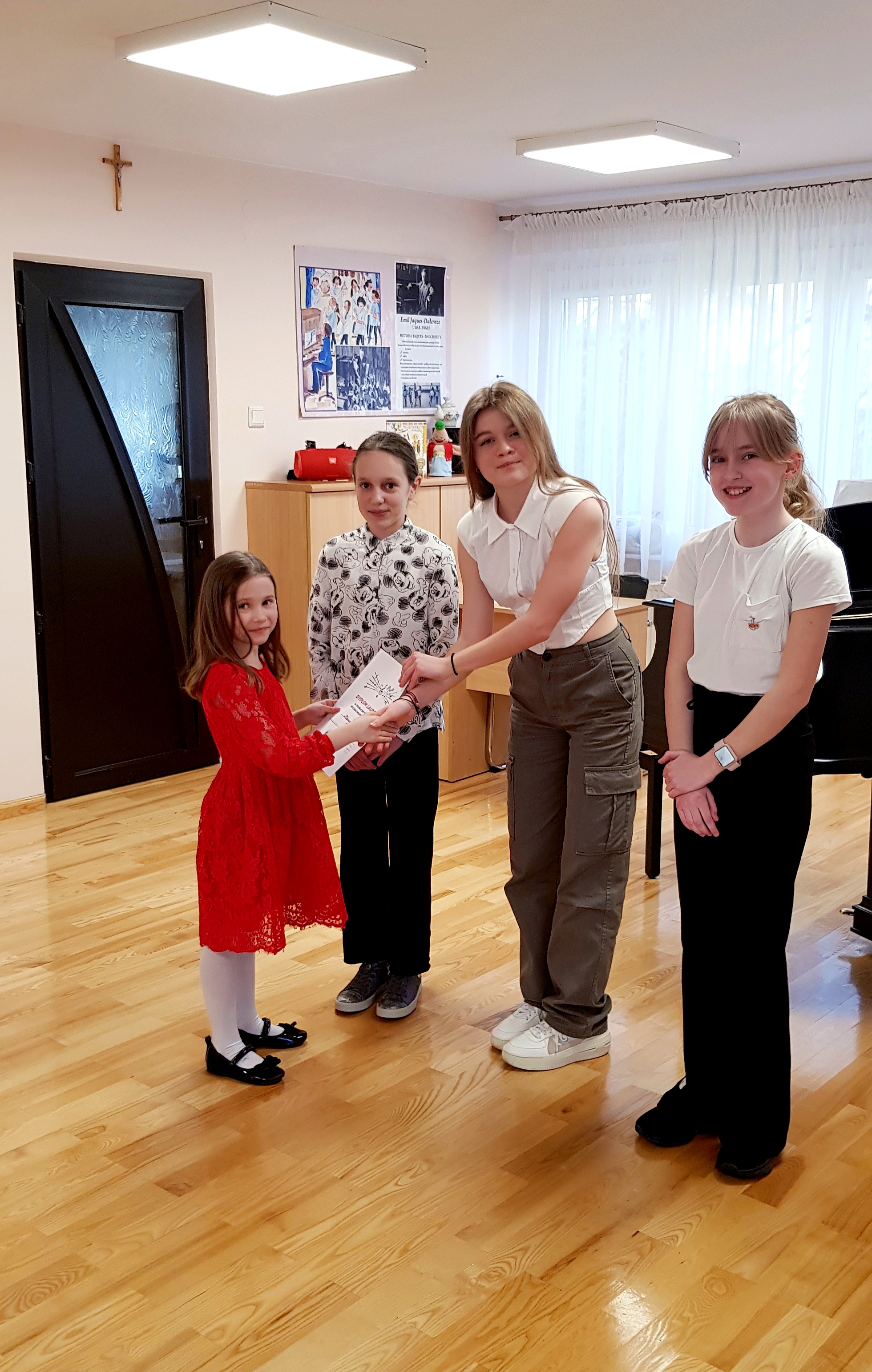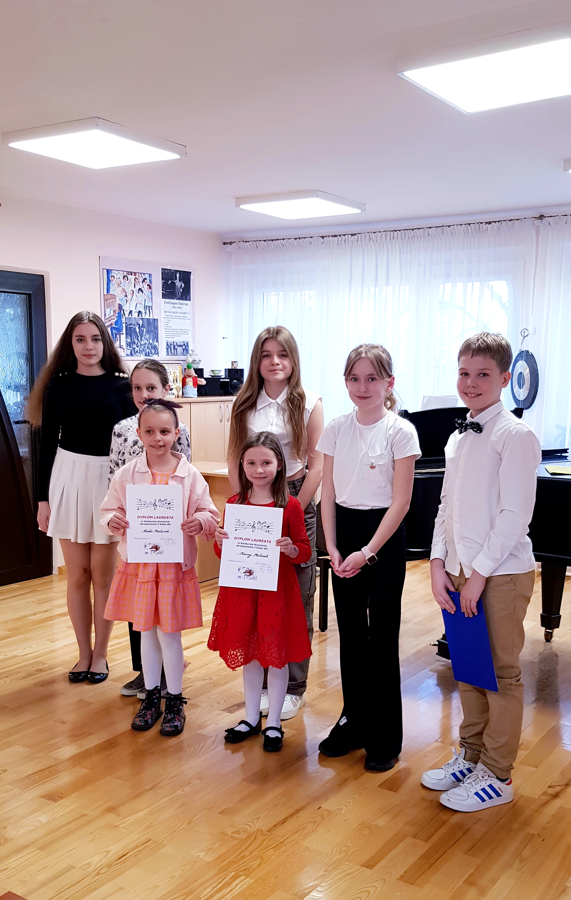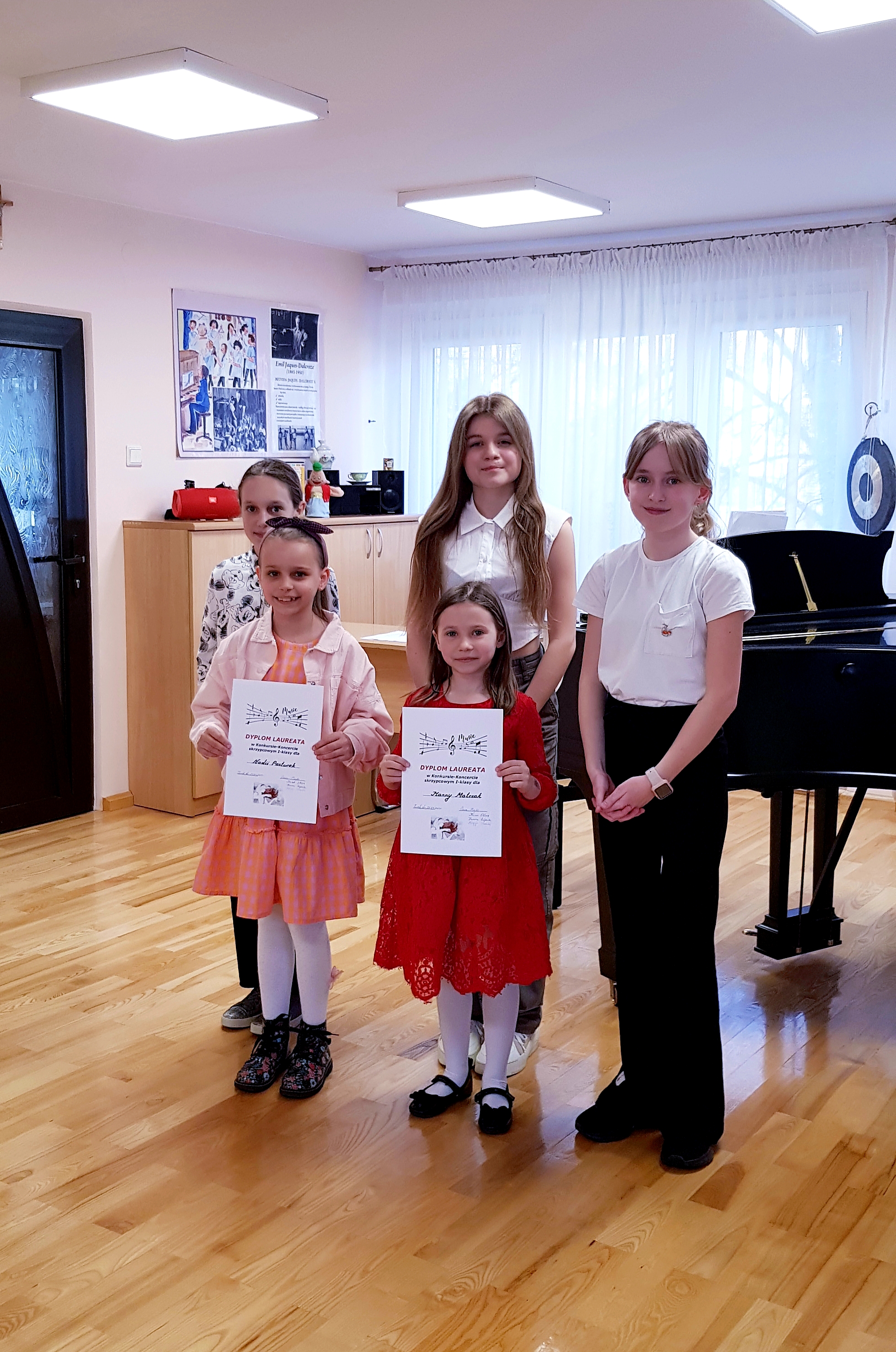 W zabawie uczestniczyli wszyscy uczniowie klasy wraz z rodzicami. W części konkursowej wystąpiły uczennice I klasy. Rolę jurorów pełniły nasze absolwentki: Anna Majda, Hanna Łajdecka i Letycja Stawicka, których zadaniem było wybrać dwie najlepsze osoby wśród grających. Dwie Laureatki Koncertu-Konkursu będą reprezentować klasę na Koncercie "Pasowanie na ucznia". Koncert-Konkurs poprowadzili Amelia Marczak i Alan Jurkiewicz. Nauczyciel - Irina Olas.