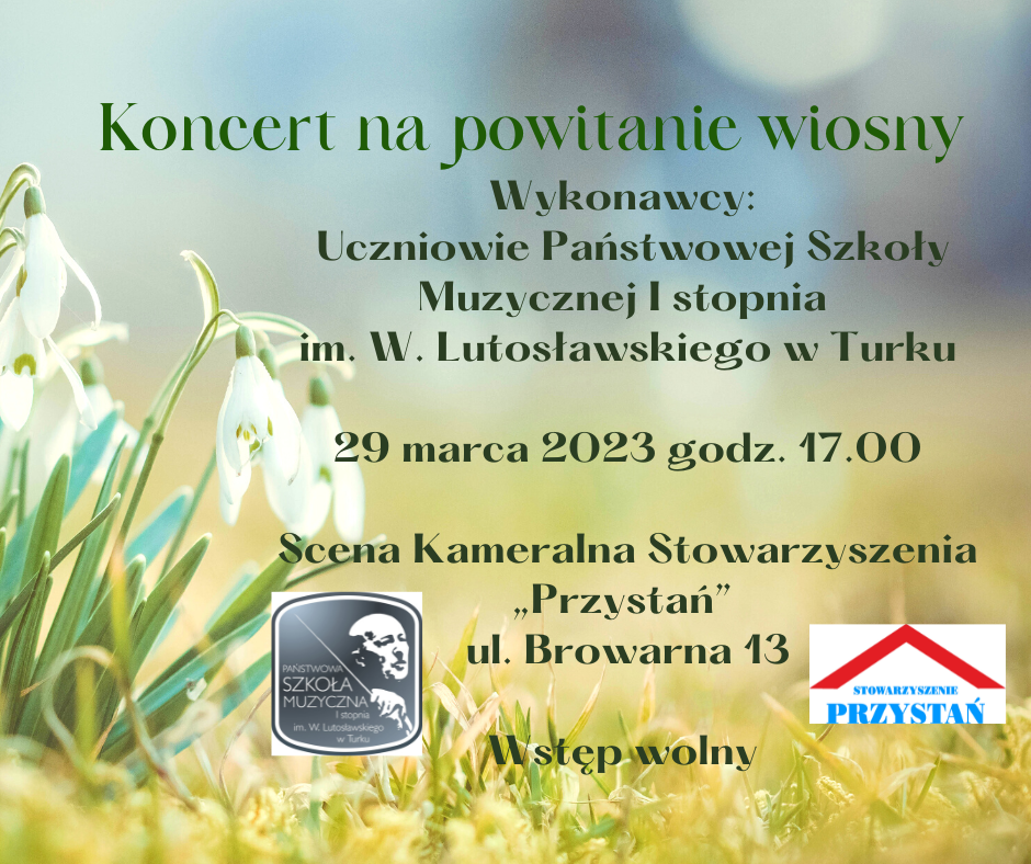 W środę, 29 marca 2023 r. uczniowie Państwowej Szkoły Muzycznej I st. im. Witolda Lutosławskiego w Turku muzycznie powitają wiosnę. W koncercie wystąpi chór, szkolna orkiestra dęta, zespoły i soliści.