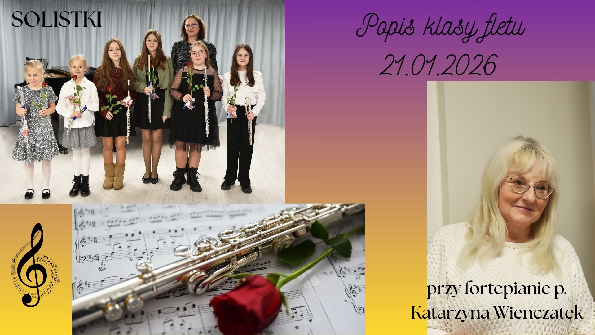 Dnia 21 stycznia 2026 r. w sali kameralnej Państwowej Szkoły Muzycznej I stopnia im. Witolda Lutosławskiego w Turku odbył się popis klasy fletu p. Zuzanny Borowieckiej. Uczennice zaprezentowały po dwa utwory, w tym jeden z pamięci. Publiczność wysłuchała utwory takich kompozytorów jak: G. F. Händel, J. Ph. Rameau, F. Mendelssohn, F. Aubin, M. Ryk, A. Lehmann, A. M. Huszcza, M. Reichert, A. Woodal. Naszym solistkom przy fortepianie towarzyszyła pianistka p. Katarzyna Wienczatek.