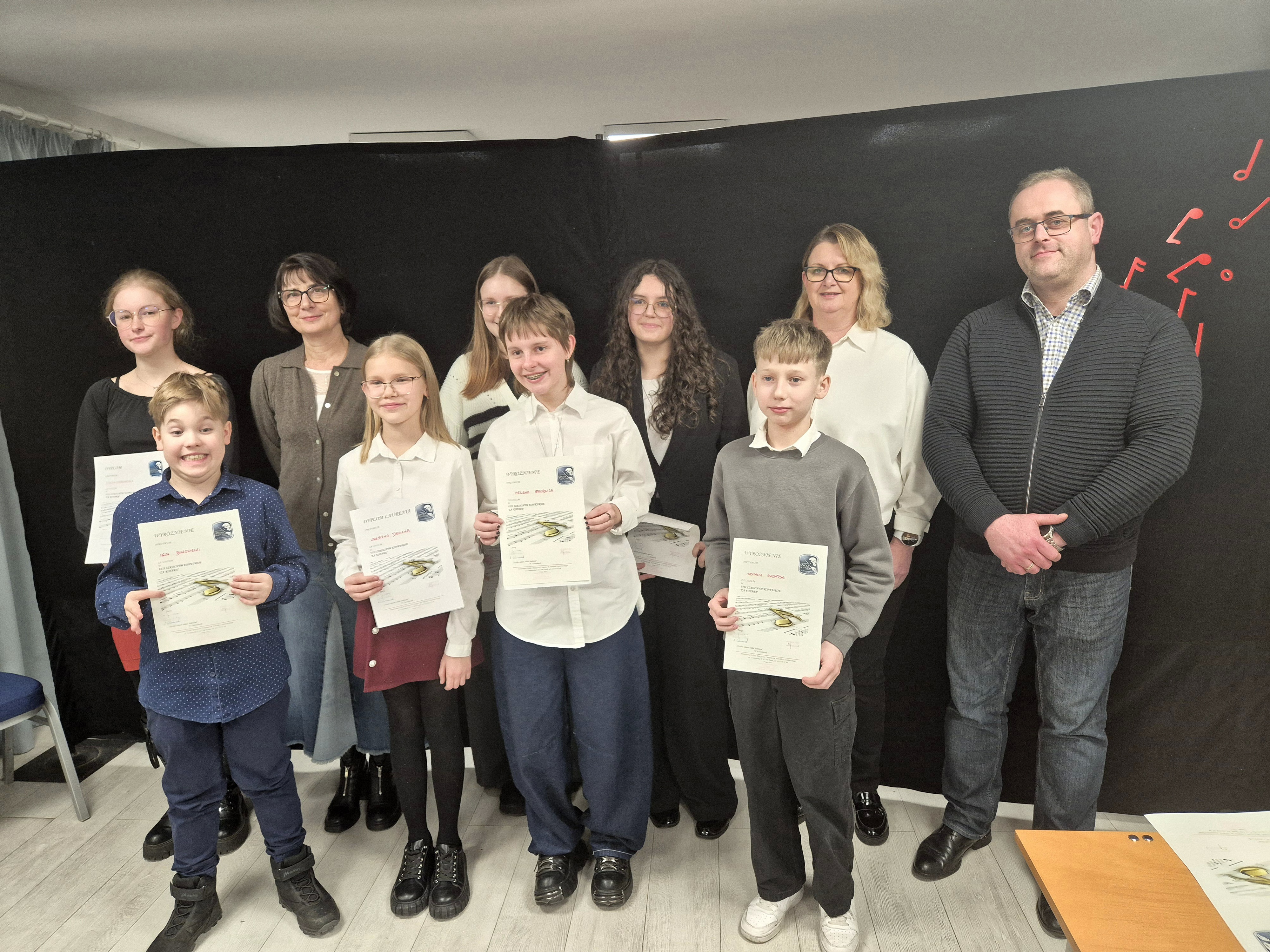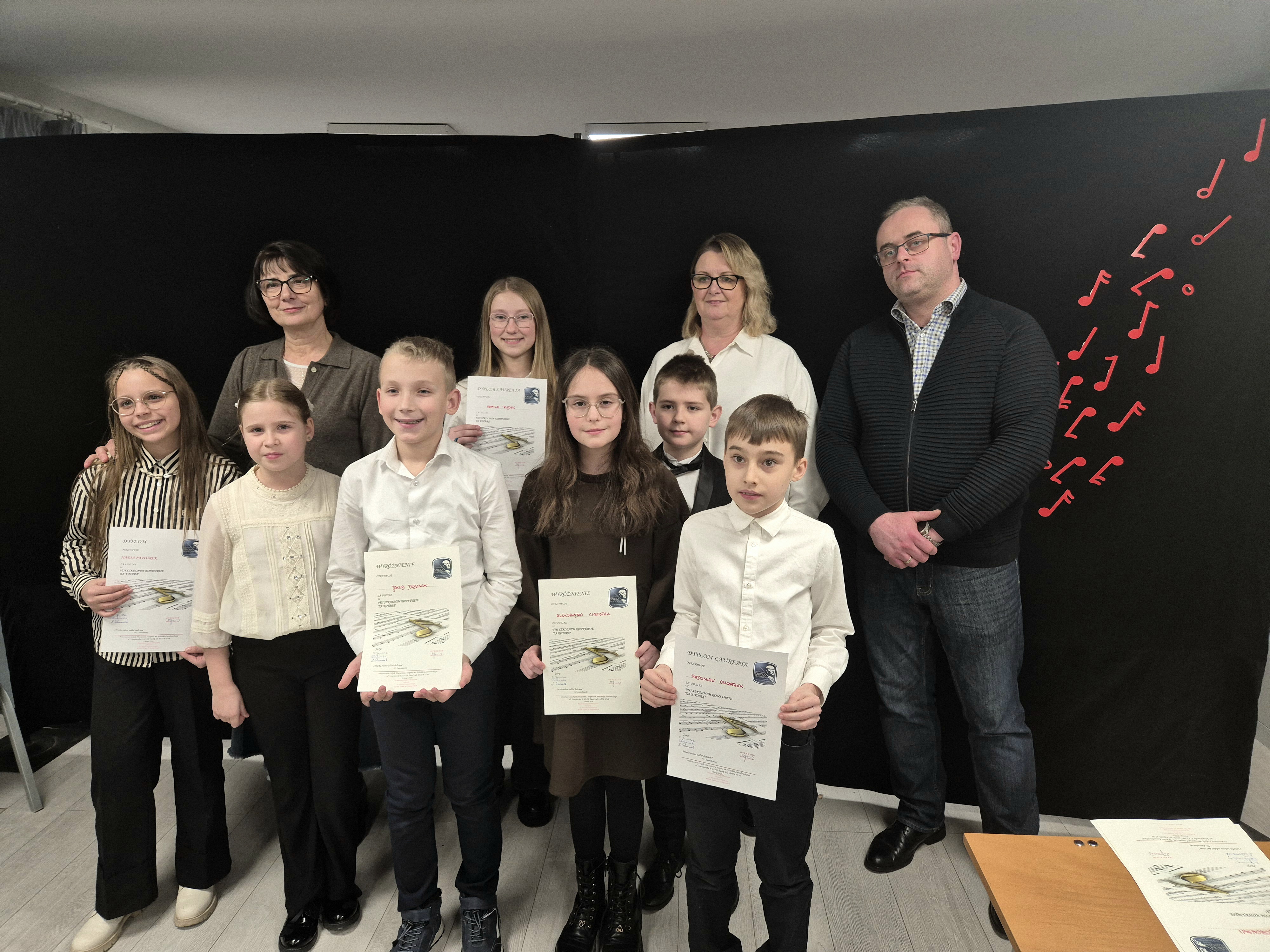 2 lutego w naszej szkole odbył się VIII Szkolny Konkurs "Za kotarą" zorganizowany przez p. Monikę Brzostowską, p. Aleksandrę Światłowską i p. Pawła Siwińskiego. Zaprezentowało się 26 uczniów z klas: skrzypiec, wiolonczeli, trąbki, fletu, puzonu, saksofonu, gitary i perkusji. Jury w każdej z trzech kategorii przyznało tytuł laureata oraz wyróżnienia.