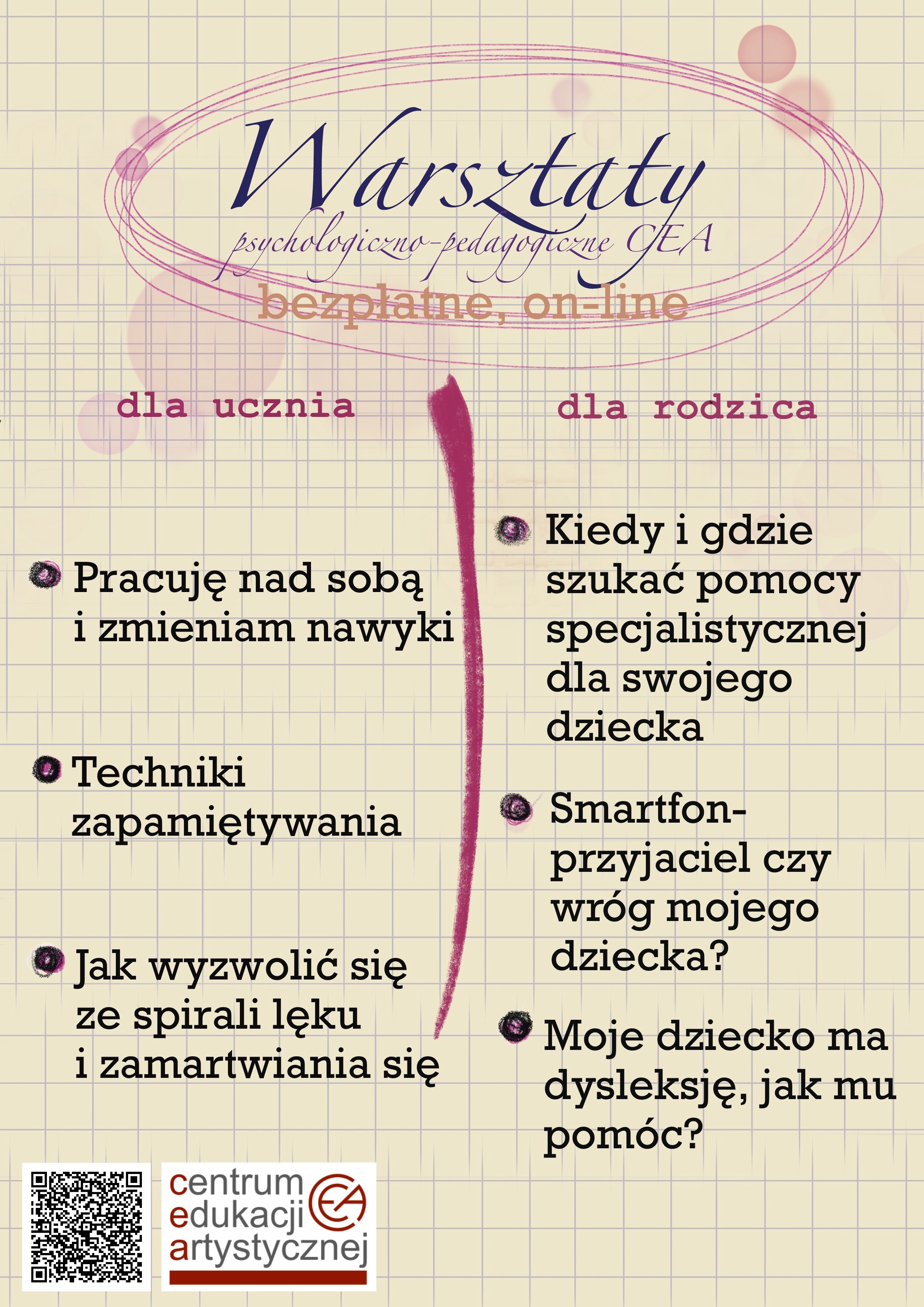 Oferta warsztatów online dla uczniów i rodziców/opiekunów szkół muzycznych organizowanych przez Dział Doskonalenia i Dokształcania CEA