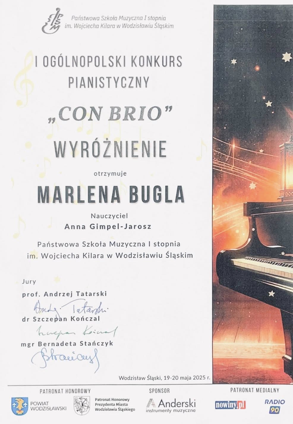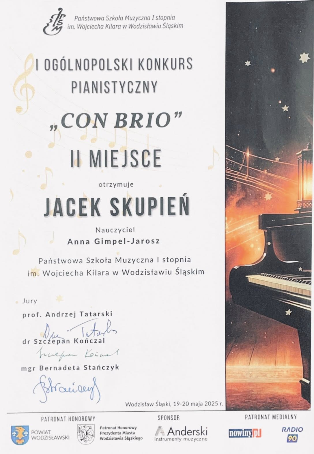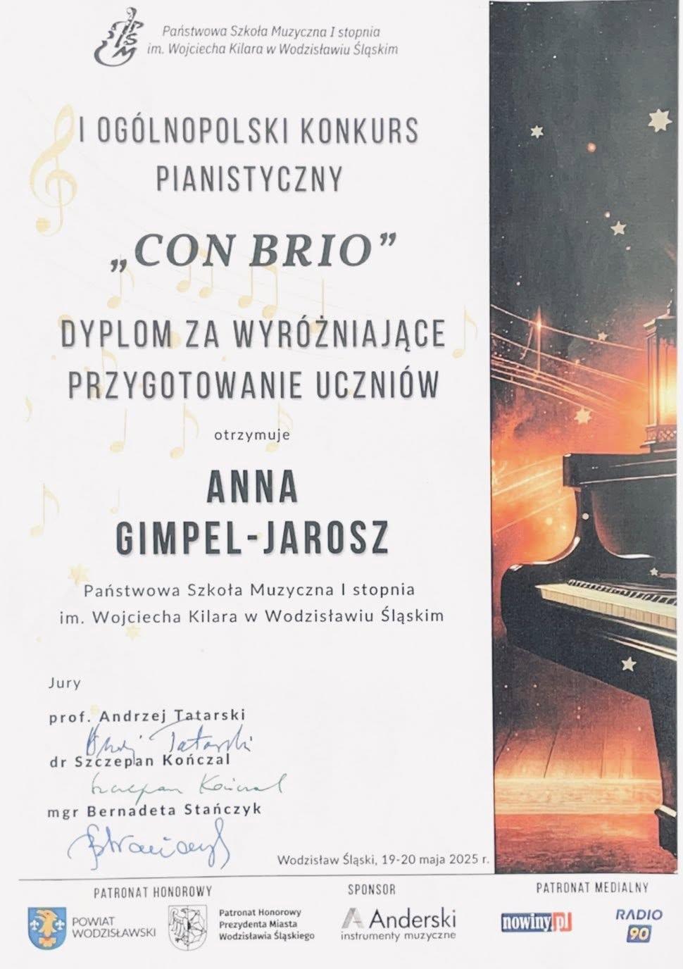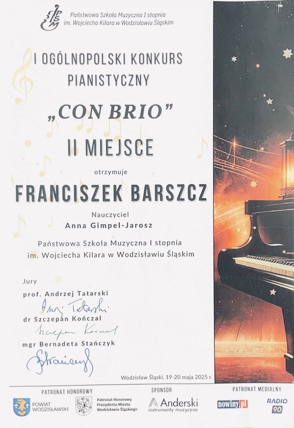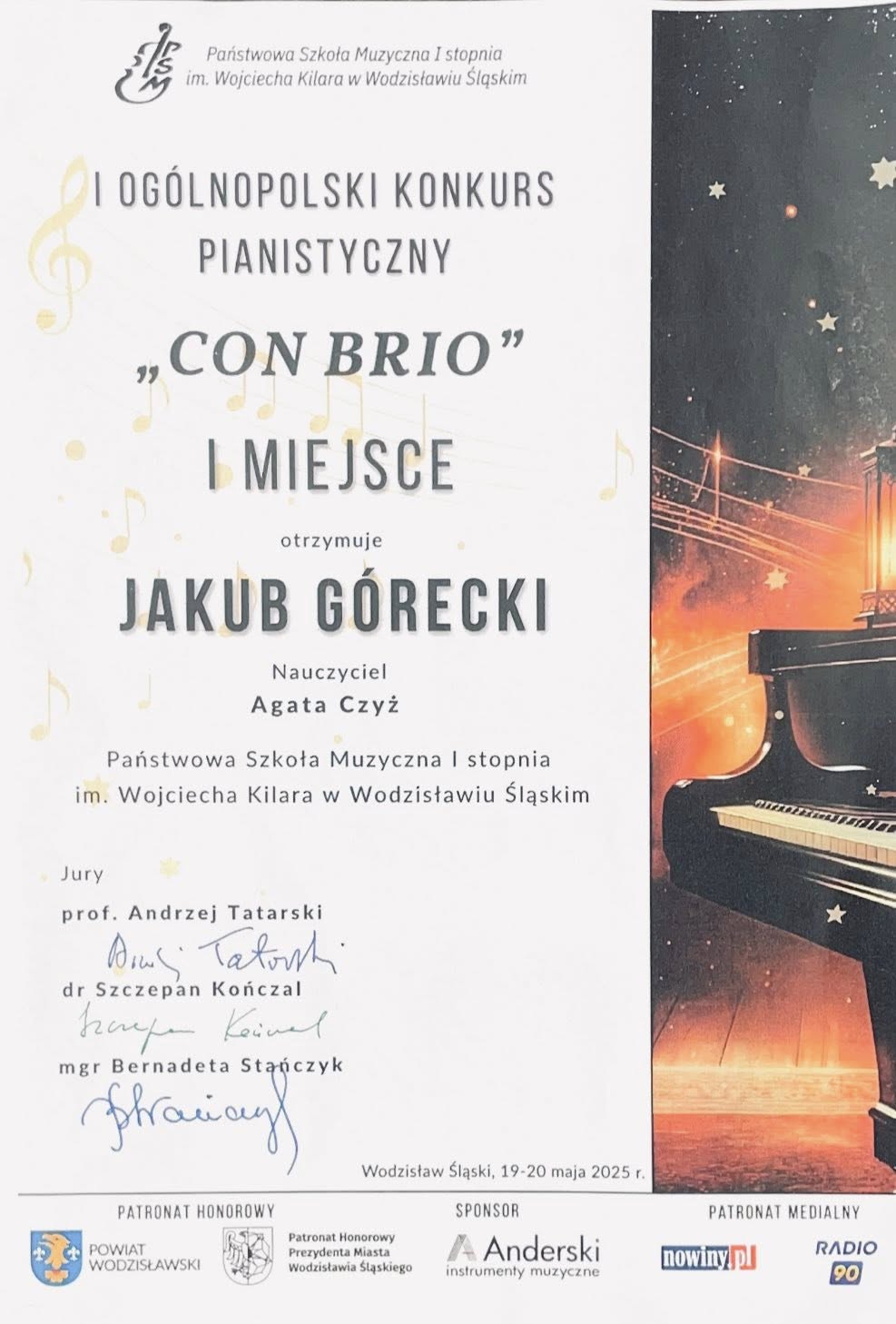 Z największą radością prezentujemy osiągnięcia naszych uczniów na I Ogólnopolskim Konkursie Pianistycznym CON BRIO
