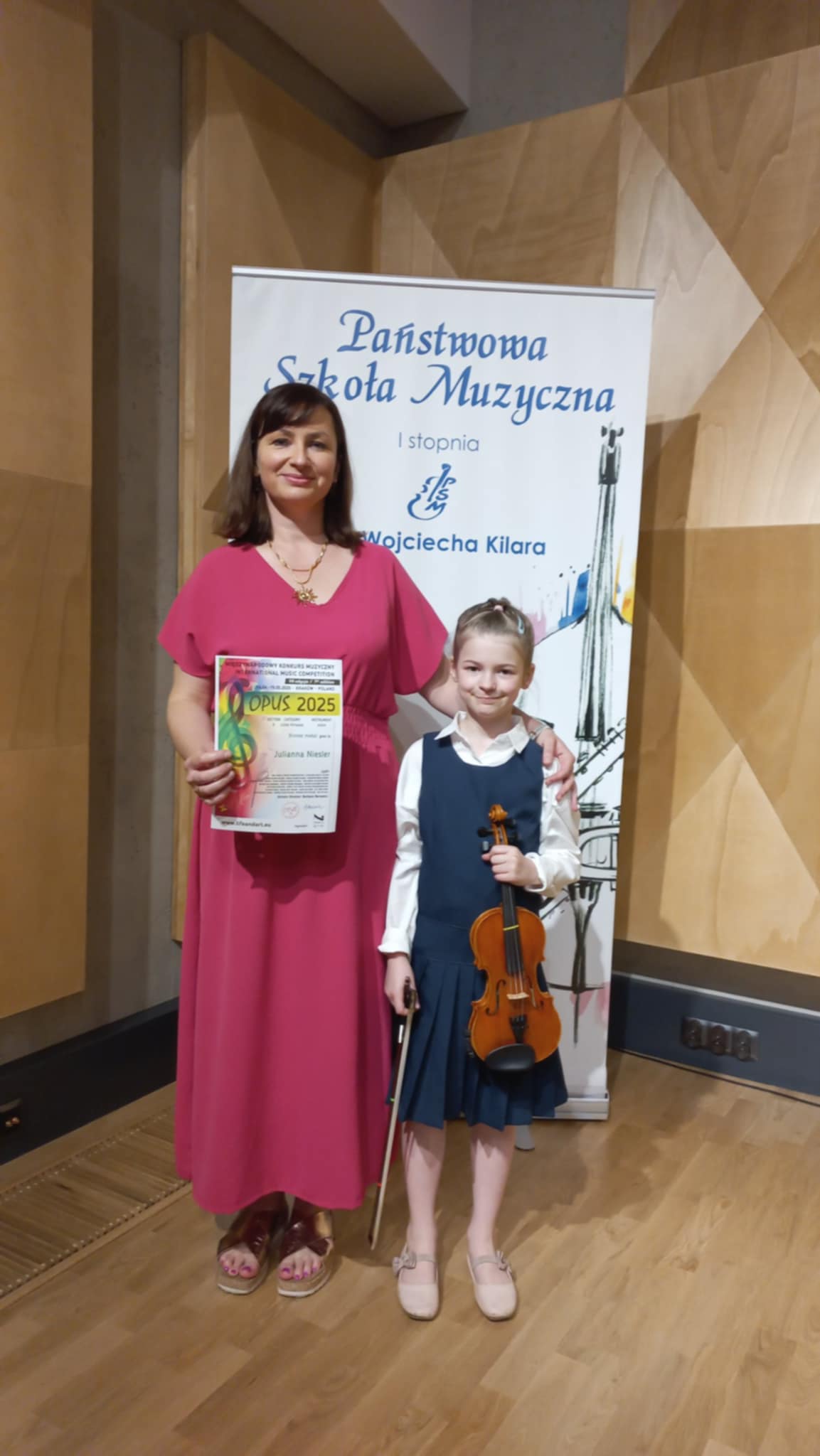 Julianna Niesler, uczennica klasy skrzypiec pani Agnieszki Durlow zdobyła brązowy medal na Międzynarodowym Konkursie Muzycznym OPUS 2025. Juliannie akompaniowała pani Agnieszka Niesler. Gratulujemy!!!