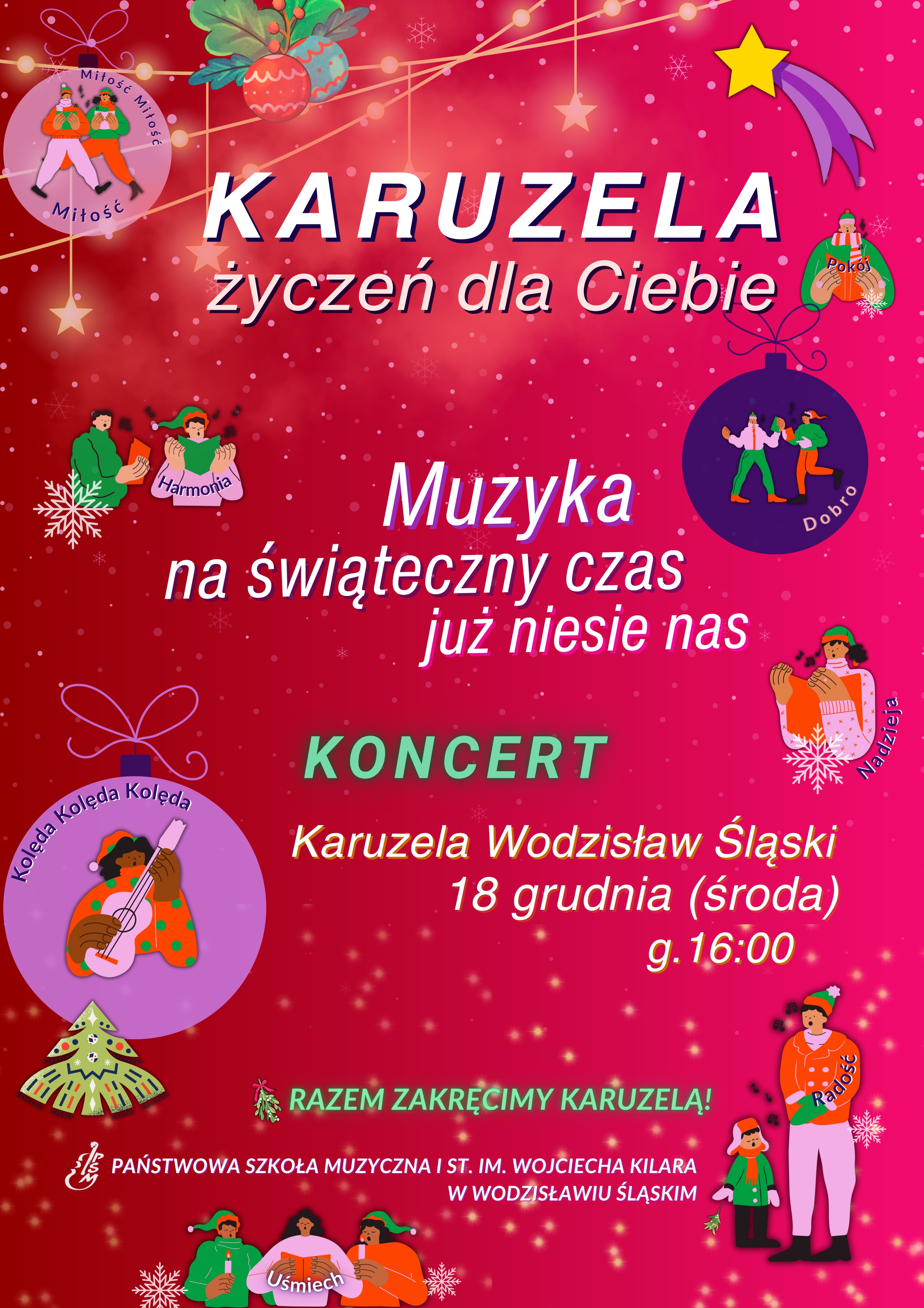 18 grudnia 2024 od godziny 16:00 zagramy w Galerii Karuzela w Wodzisławiu Śląskim. Zapraszamy do wspólnego kolędowania!