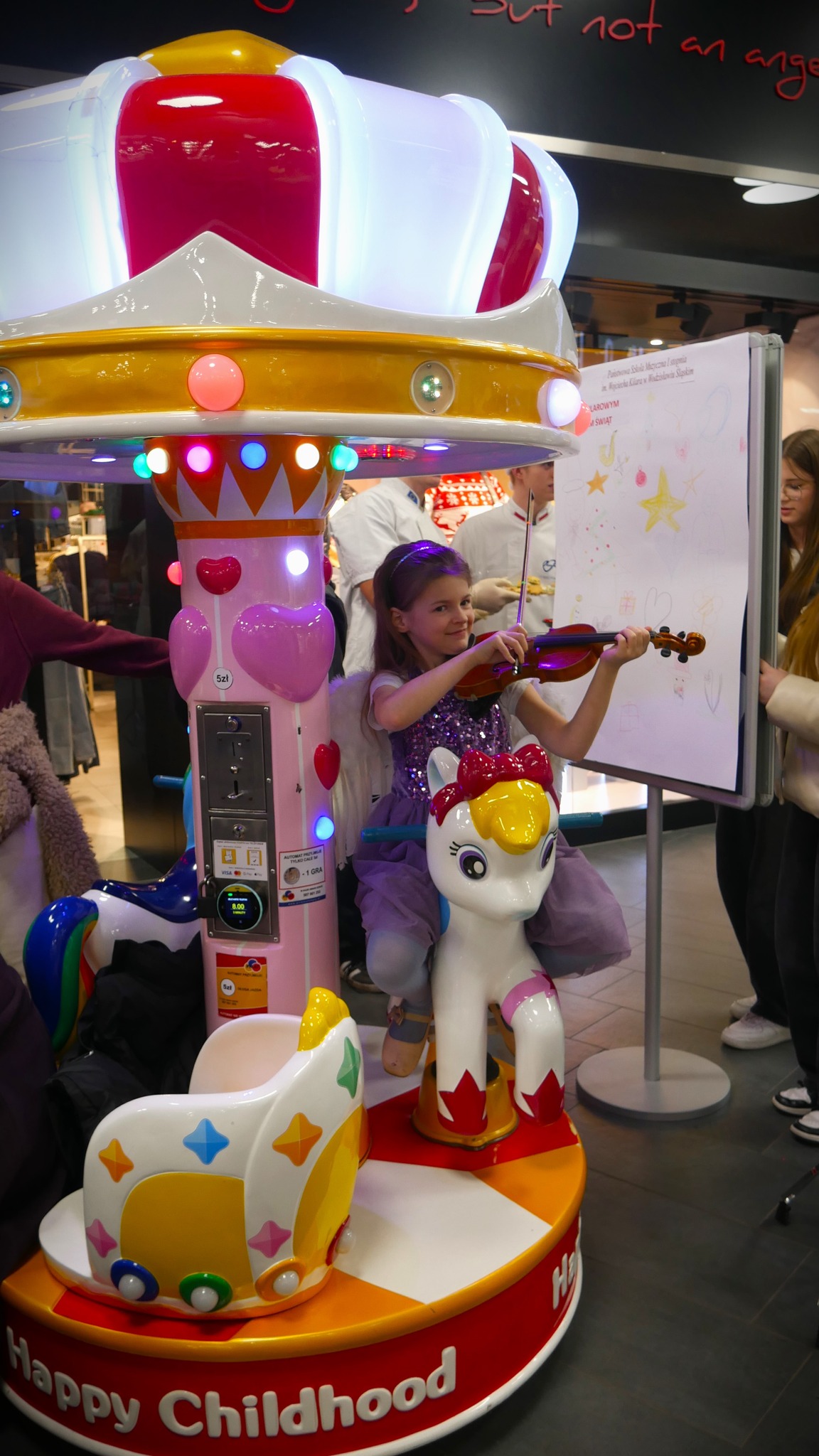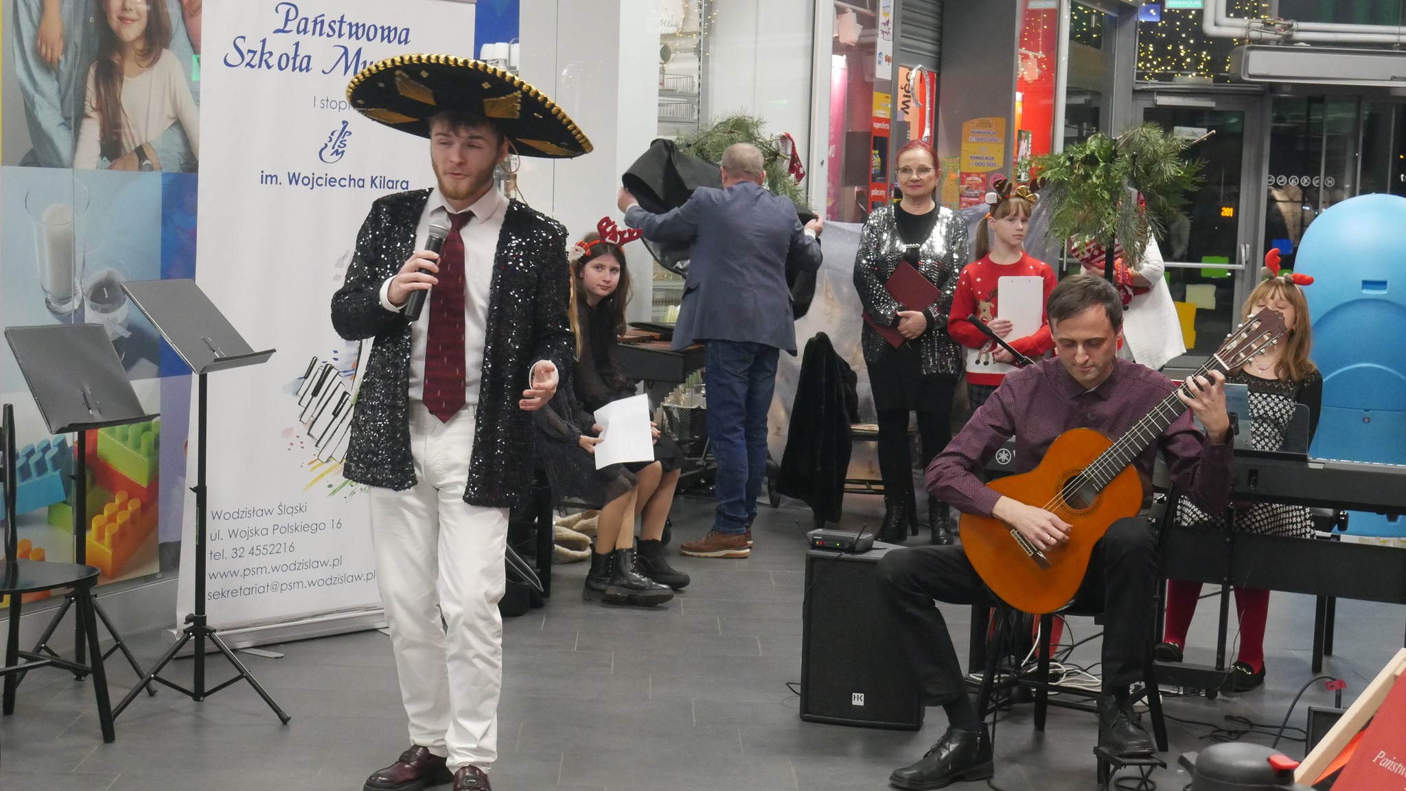 18 grudnia 2024 wspólnie z Mikołajem kolędowaliśmy w Galerii Karuzela w Wodzisławiu Śląskim! Było wesoło i świątecznie! Bardzo dziękujemy wszystkim, którzy swoją grą umilali przechodniom dzisiejsze popołudnie. Serdeczne dzięki dla nauczycieli zaangażowanych w organizację koncertu, a szczególnie dla pani Jolanty Kulej. Szczudlarz Edward zachęcał do śpiewania i rysowania świątecznej tapety "Rysuj z Kilarowym Duchem Świąt", uczniowie Zespołu Szkół Ekonomicznych częstowali chętnych Wojtusiowymi słodkościami przygotowanymi przez Hotel Ostrawa, a Świąteczni Przechodnie grali z nami. Zarówno produkcje klasyczne jak i kolędy zostały przyjęte ciepło i z uśmiechem.