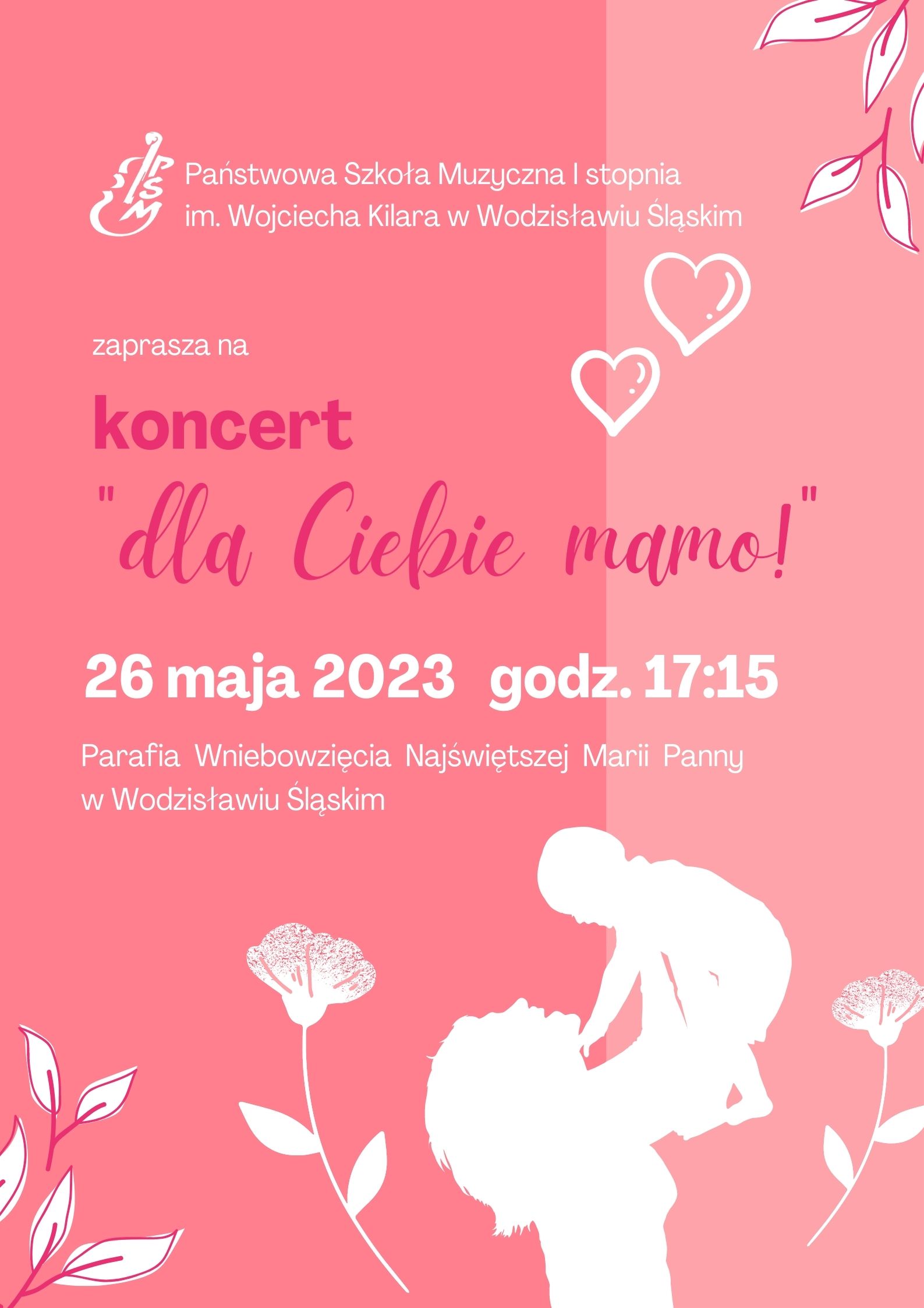 26 maja 2023 w Kościele Wniebowzięcia Najświętszej Marii Panny w Wodzisławiu Śląskim odbył się koncert "Dla Ciebie Mamo!" Bardzo dziękujemy księdzu proboszczowi Bogusławowi Płonce za możliwość koncertowania dla naszych mam i za gorące przyjęcie naszych młodych artystów. Dziękujemy wszystkim zaangażowanym w przygotowanie uczniów i organizację koncertu. Wykonawcom gratulujemy!