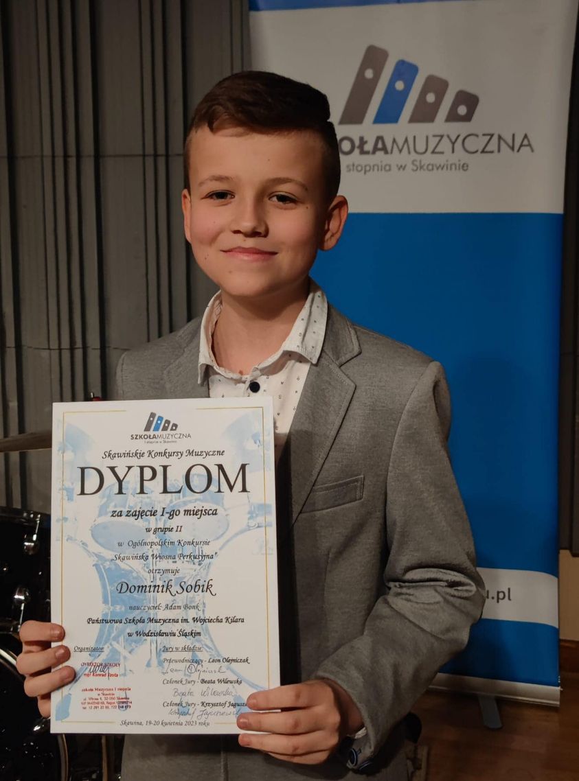 Dominik Sobik zajął I miejsce Dominika Sobika na Ogólnopolskim konkursie - Skawińska Wiosna Perkusyjna. Laureat jest uczniem klasy perkusji Adama Bonka. Dominikowi akompaniował Michał Krupa. Serdecznie gratulujemy uczniowi i jego nauczycielowi!