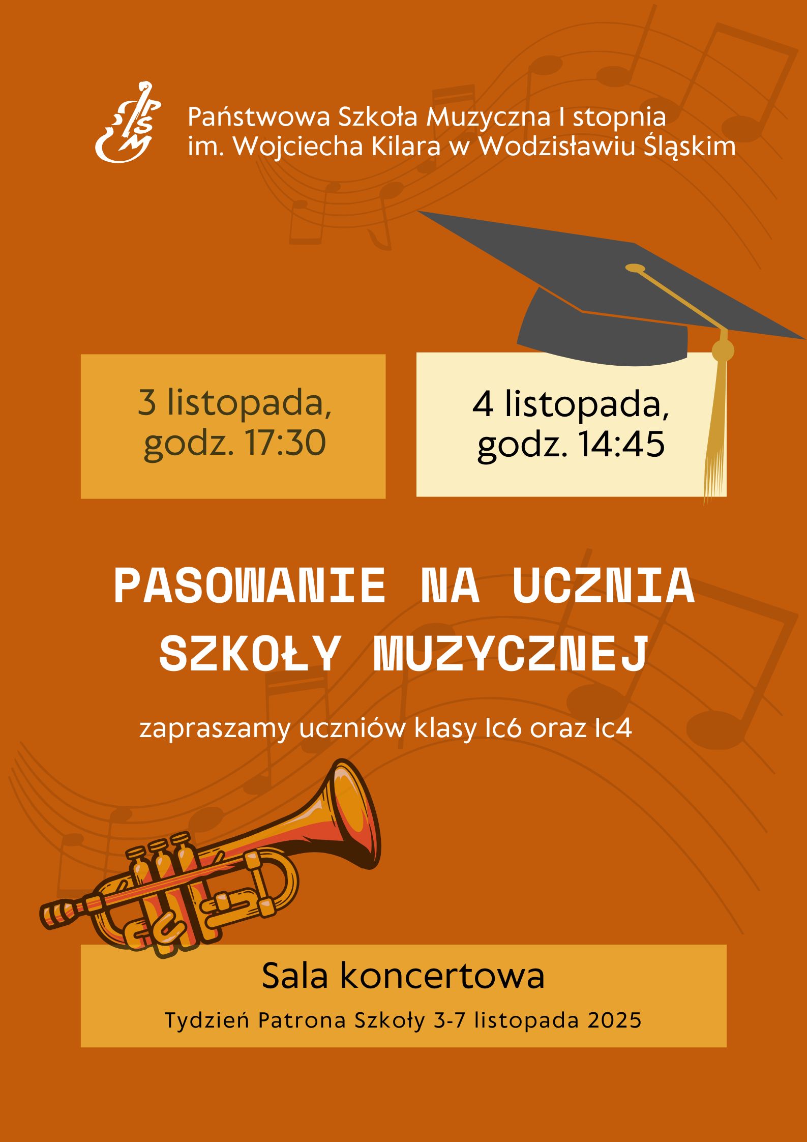 Z radością informujemy, że w ramach obchodów Tygodnia Patrona Szkoły – Wojciecha Kilara odbędzie się uroczystość Pasowania na Ucznia Szkoły Muzycznej dla uczniów klas pierwszych.