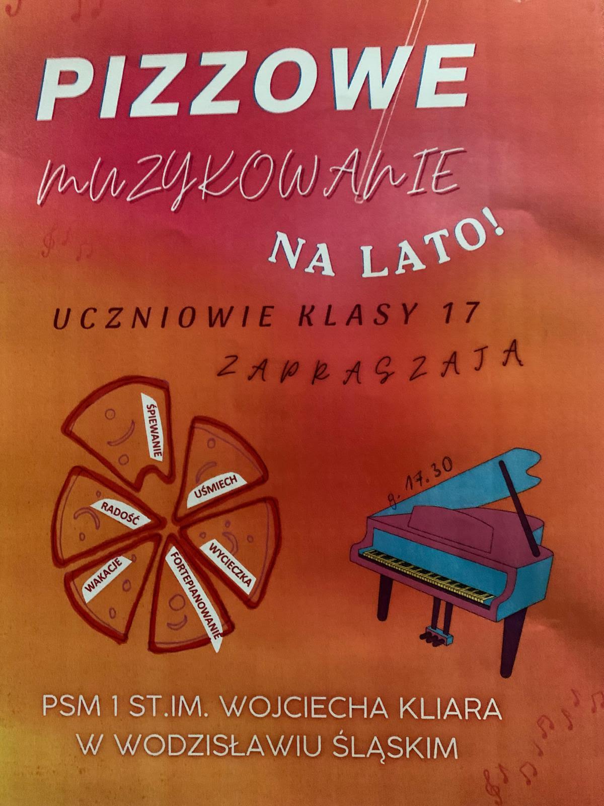 19 czerwca klasa fortepianu Jolanty Kulej prezentowała swoje utwory w Trattorii w Marklowicach. Uczniowie wykonali różne kompozycje, które goście restauracji nagrodzili gromkimi brawami. Nagrodą za „Pizzowe Muzykowanie na lato" była przepyszna pizza, którą właściciele Trattorii poczęstowali naszych uczniów. Pani Joannie i panu Jarosławowi serdecznie dziękujemy za gościnę!