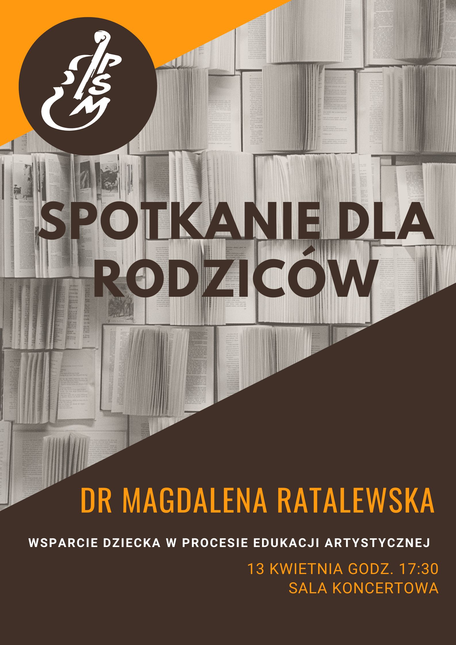 "Wsparcie dziecka w procesie edukacji artystyczne" - zapraszamy wszystkich rodziców do wzięcia udziału w spotkaniu-konferencji prowadzonej przez dr Magdalenę Ratalewską 13 kwietnia 2023 o godz. 17:30 w sali koncertowej szkoły.