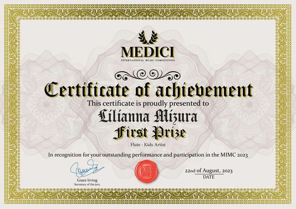 Lilianna Mizura z klasy fletu Katarzyny Starzec-Kawalec uzyskała I nagrodę w MEDICI International Music Competition.