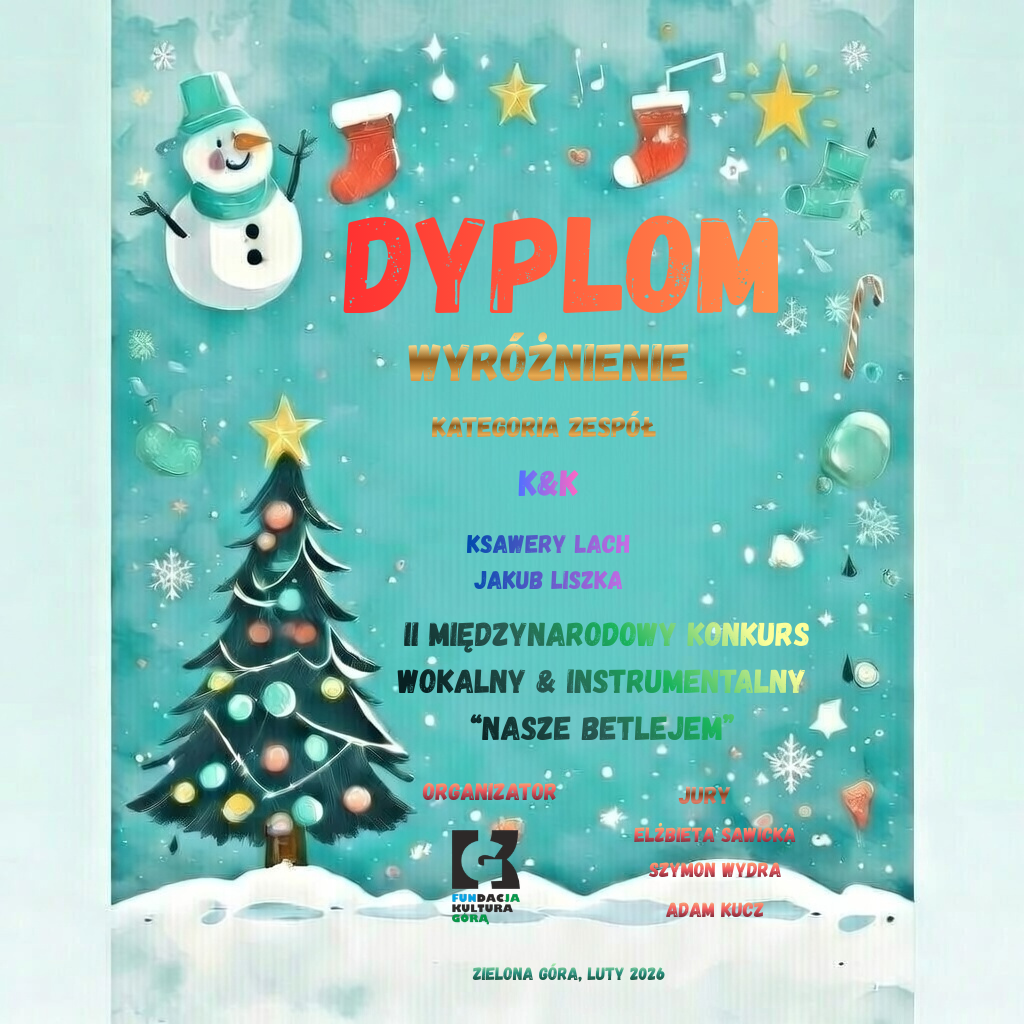 Ksawery Lach i Jakub Liszka zdobyli wyróżnienie na II Międzynarodowym Konkursie Wokalnym i Instrumentalnym "Nasze Betlejem" w Zielonej Górze. Uczniów przygotowały pani Agnieszka Durlow i pani Jolanta Kulej. Gratulujemy!!!