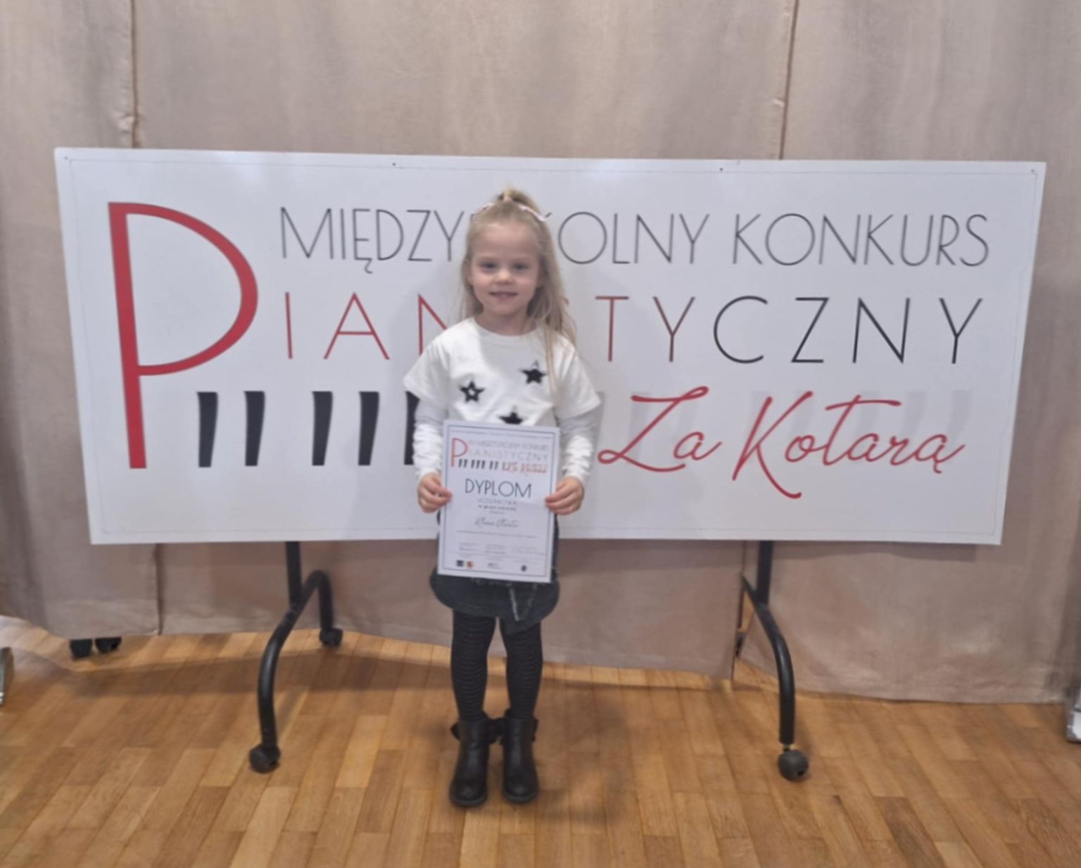 31 marca 2025 roku w Lesznie odbył się XIV Międzyszkolny Konkurs Pianistyczny "ZA KOTARĄ". W grupie pierwszej zaprezentowała się nasza uczennica z klasy pani Jagody Młynarskiej - Klara Utrata. Jury konkursu nagrodziło występ Klary "Dyplomem Pochwały". Gratulujemy.
