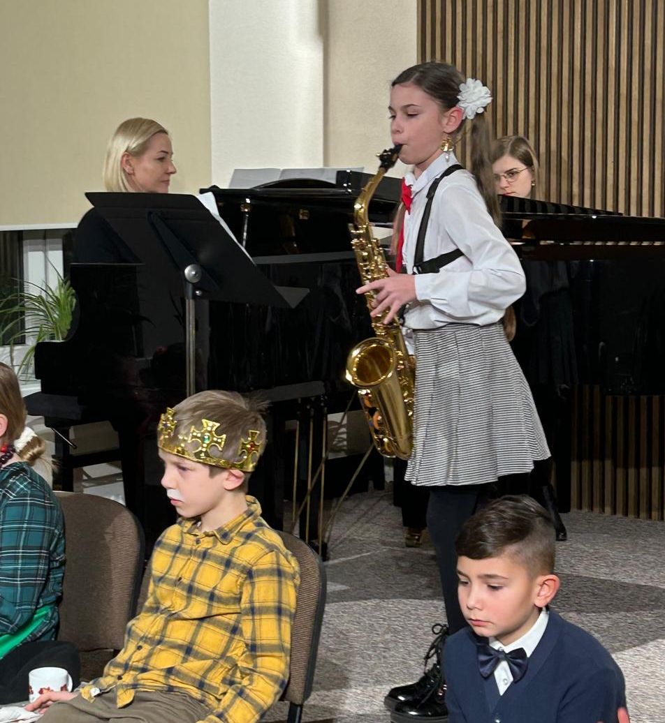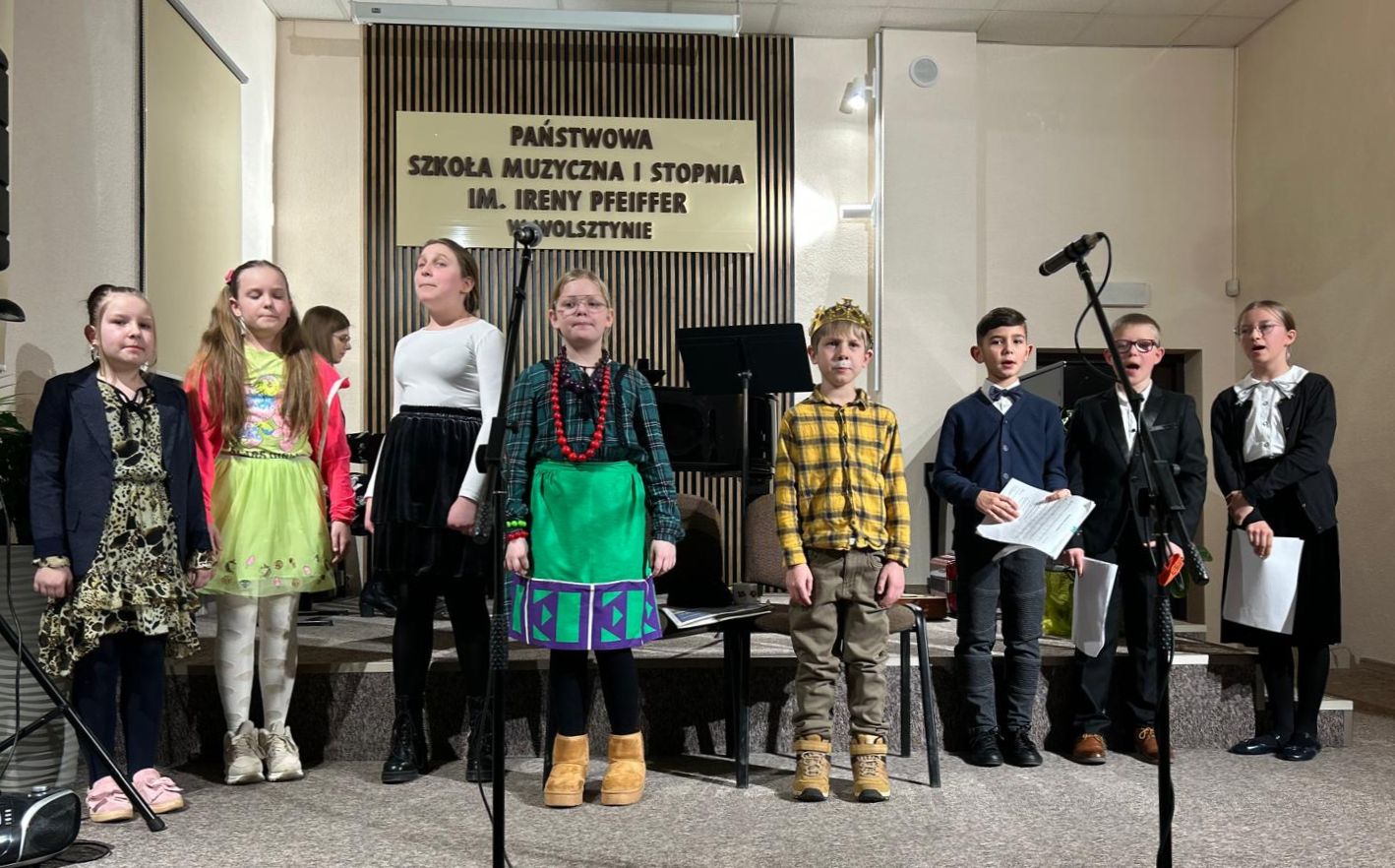 Dnia 5 lutego 2025 roku odbył się koncert dla naszych kochanych babć i dziadków. Najmłodsza grupa chóralna przygotowała krótkie przedstawienie, które zostało ubarwione piosenkami. Na scenie zaprezentowali się również nasi młodzi instrumentaliści. Zwieńczeniem tego miłego spotkania było wspólne wykonywanie popularnych piosenek, do których akompaniowali pani dyrektor Agnieszka Pilarek-Szumska oraz panowie Wojciech Warszawski i Mirosław Jędrzejewski. Na wszystkich czekał wspaniały, słodki poczęstunek przygotowany przez Radę Rodziców.
