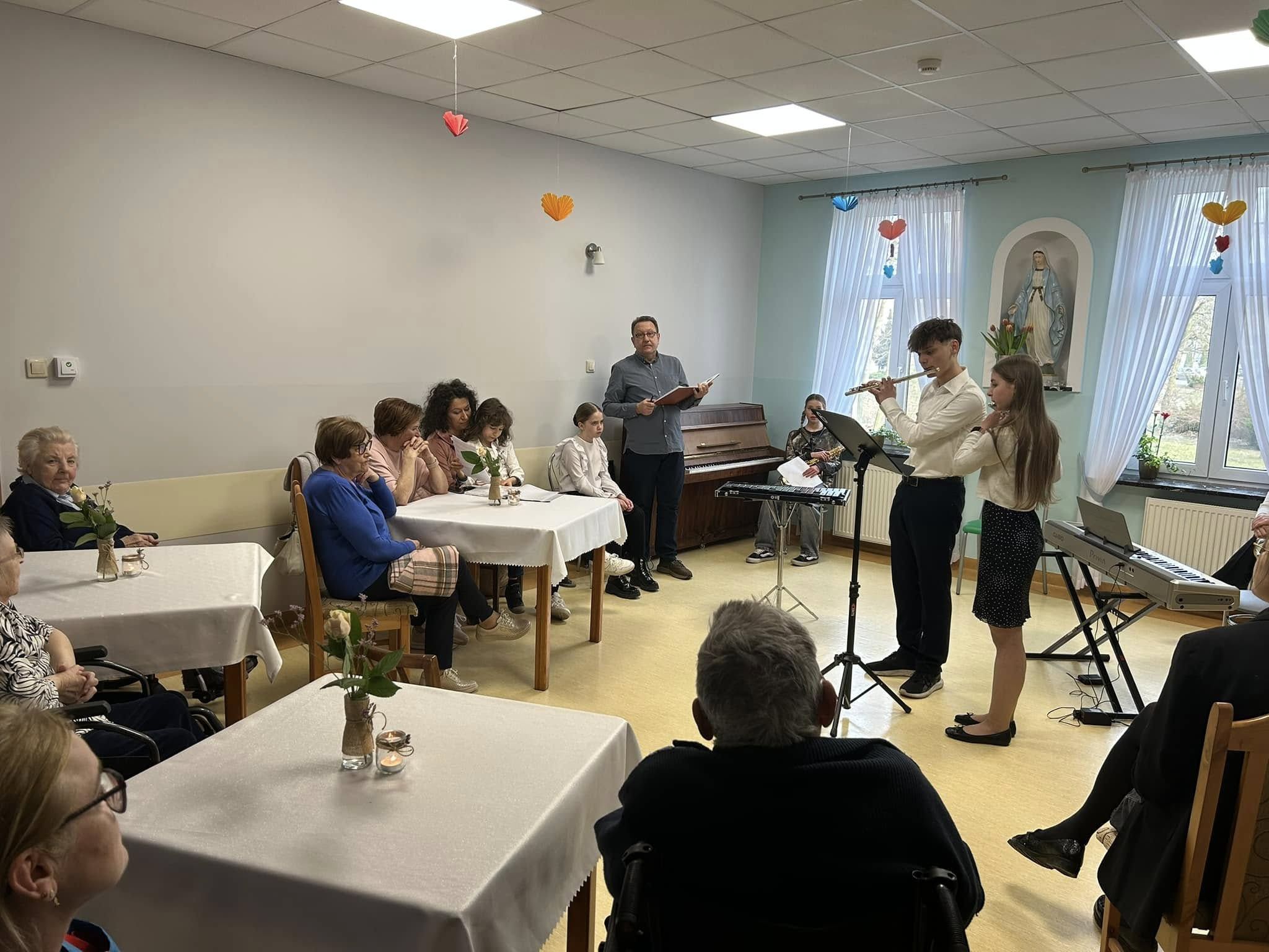12 marca 2025 roku w Wolsztyńskim Domu Opieki Społecznej odbył się wyjątkowy koncert uczniów Szkoły Muzycznej I stopnia. Było to już drugie tego typu wydarzenie, które spotkało się z ogromnym entuzjazmem zarówno wśród mieszkańców placówki, jak i samych młodych artystów.