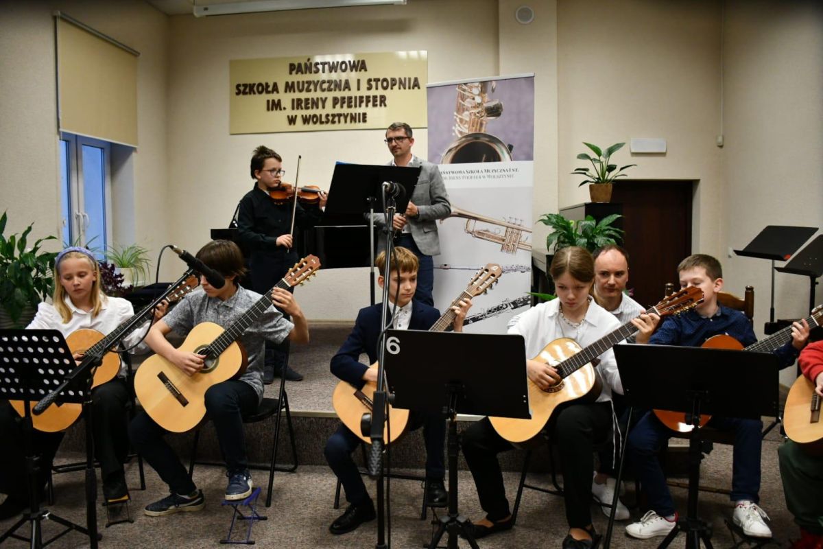 10 października 2024 roku odbył się koncert z okazji Dnia Edukacji Narodowej i Pasowania Uczniów Klas 1. Uroczystość tę zaszczycili swą obecnością starosta wolsztyński pan Jacek Skrobisz, burmistrz Wolsztyna, pan Dominik Tomiak oraz pani wiceburmistrz Katarzyna Hordecka. Szczególnie miło było nam powitać na tym koncercie uczniów i nauczycieli z PSM I st. w Kłodzku, których gościliśmy właśnie w ramach "Muzycznej Zielonej Szkoły", a którzy wraz z naszymi uczniami i nauczycielami zagrali na scenie sali kameralnej. To wspólne muzykowanie było doskonałym uzupełnieniem życzeń dla nauczycieli i pracowników administracji i obsługi szkoły; uświetniło również uroczyste pasowanie naszych pierwszoklasistów. Nowi uczniowie złożyli ślubowanie i pani dyrektor Agnieszka Pilarek-Szumska symbolicznym smyczkiem przyjęła Ich do szkolnej społeczności. Rada Rodziców obdarowała młodych muzyków upominkami. Cały koncert pięknie poprowadziły nasze uczennice - Maja Badowska i Julia Wieczorek.