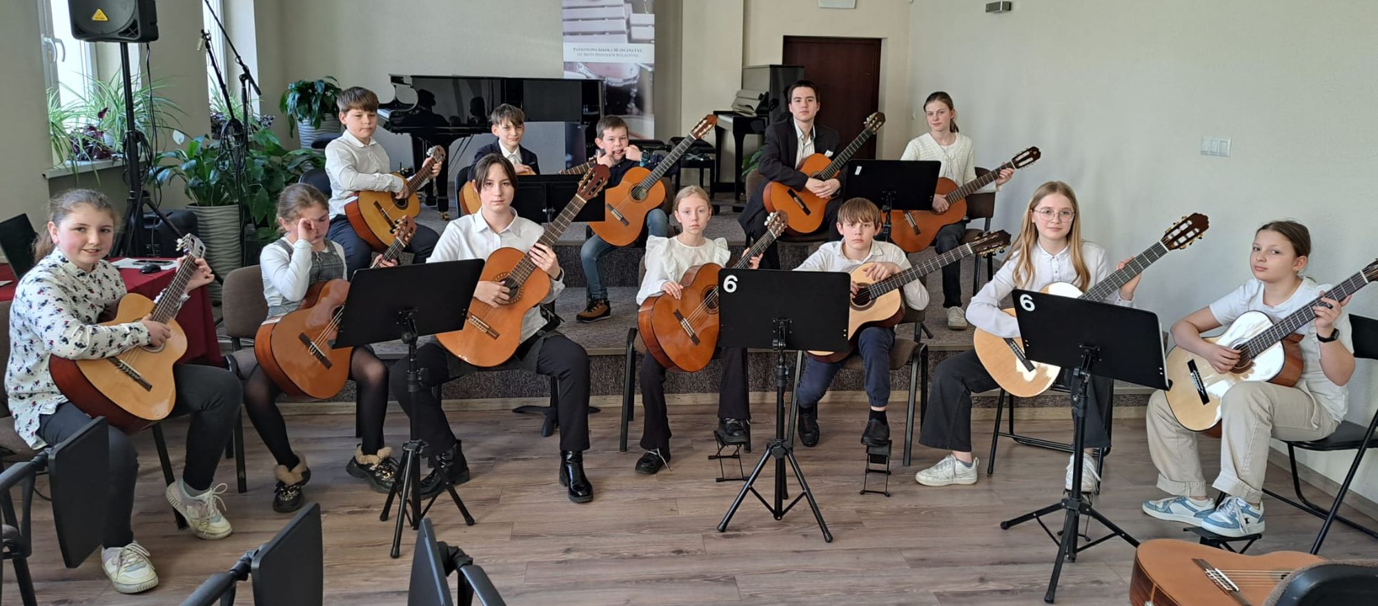 Dnia 27 marca 2024 roku gitarzyści z klas panów Wojciecha Warszawskiego i Rafała Ratajczaka wystąpili na popisie klasowym grając solo i wspólnie, w dużym zespole. Spotkanie było o charakterze warsztatowym i miało na celu przygotowanie do występów publicznych.
