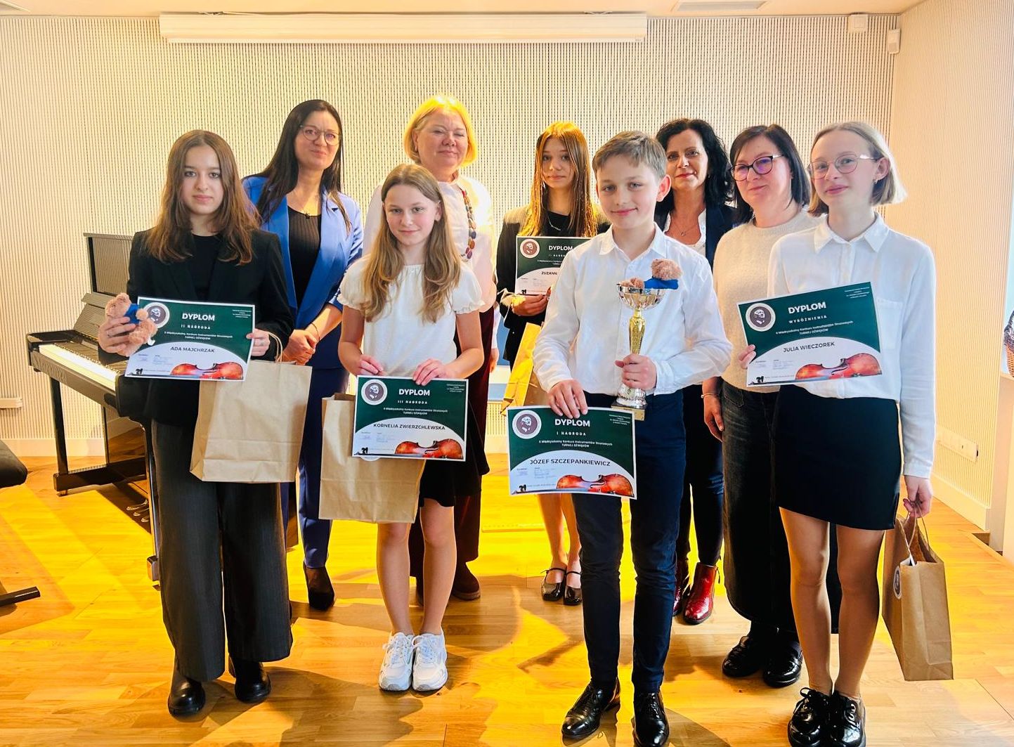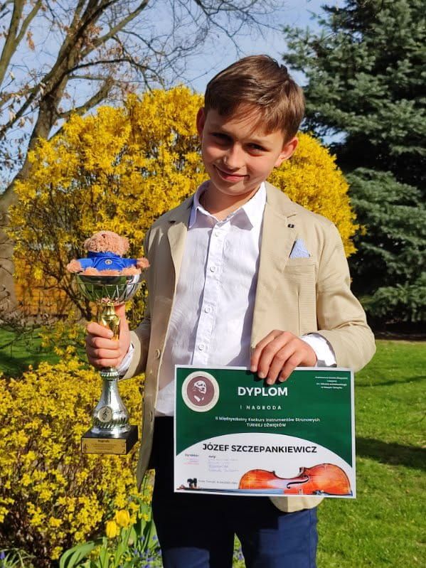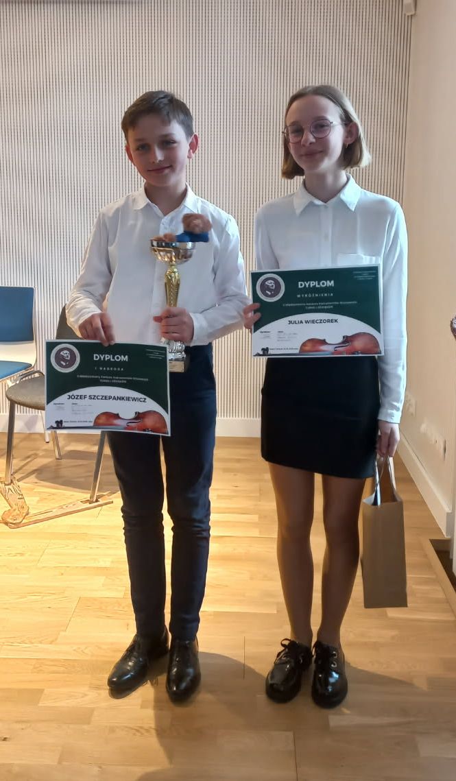Sukcesem zakończył się również występ naszych wiolonczelistów z klasy pani Małgorzaty Jankowskiej. Józef Szczepankiewicz został nagrodzony I miejscem w grupie III, a Michalinie Liśkiewicz jury przyznało wyróżnienie w grupie II. Ogromne gratulacje dla naszych zdolnych uczniów!
