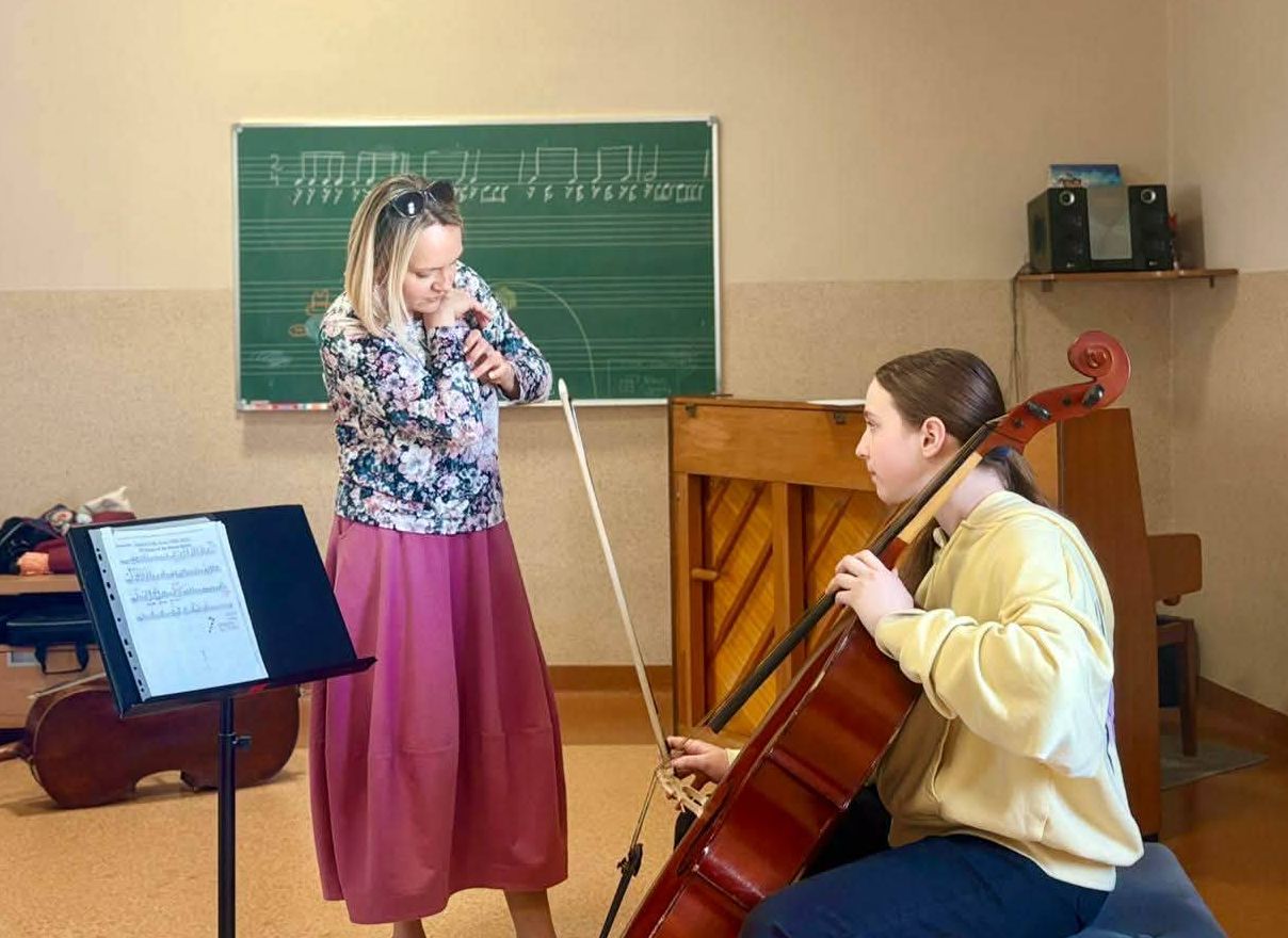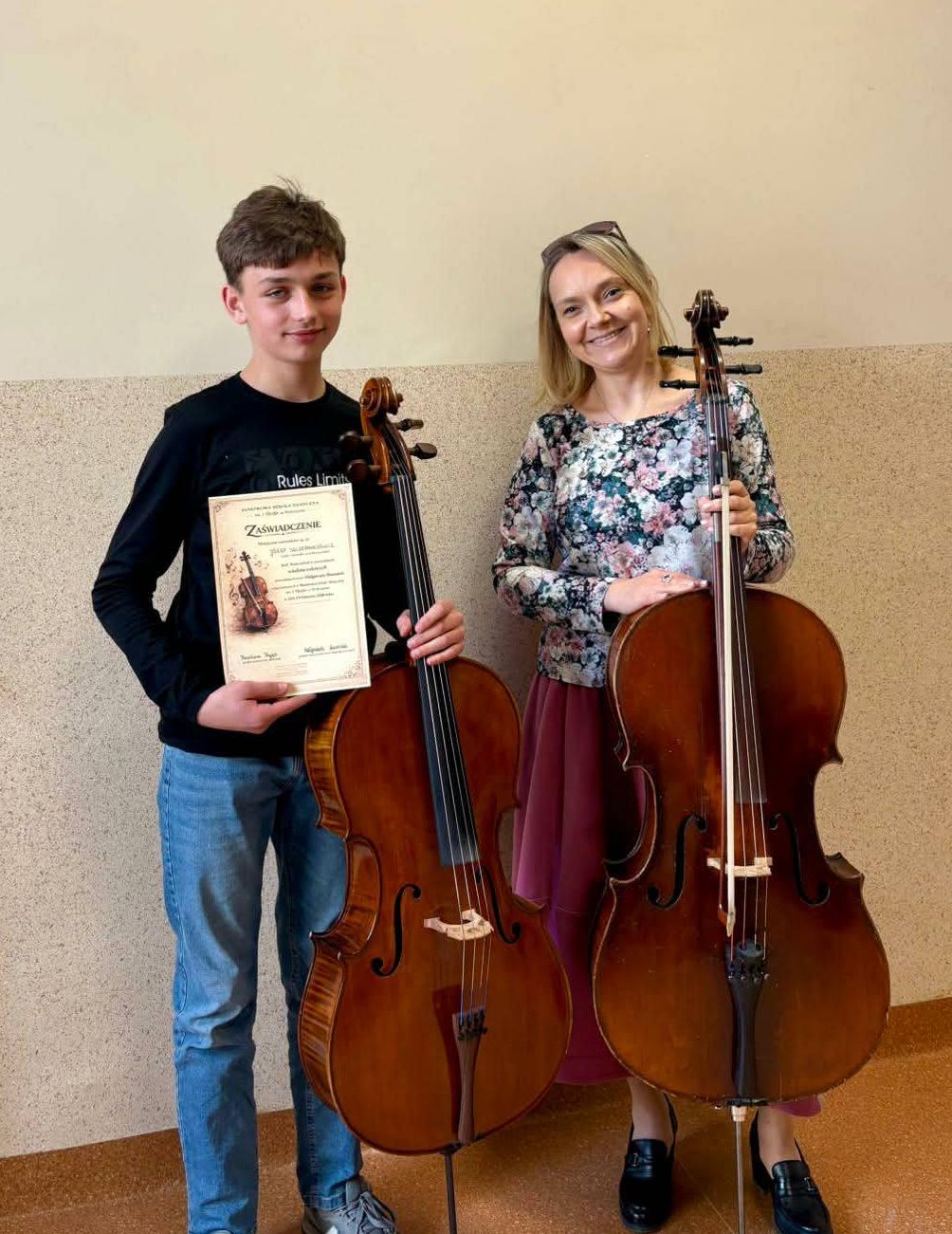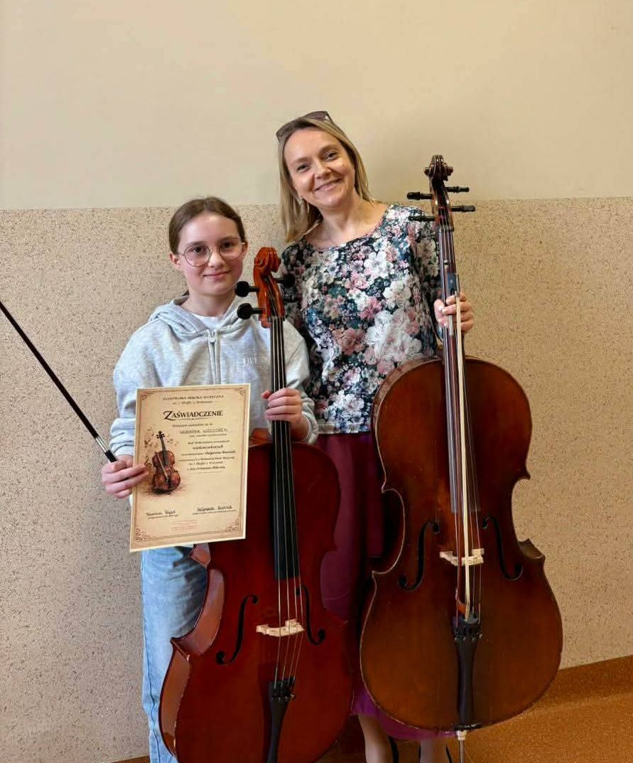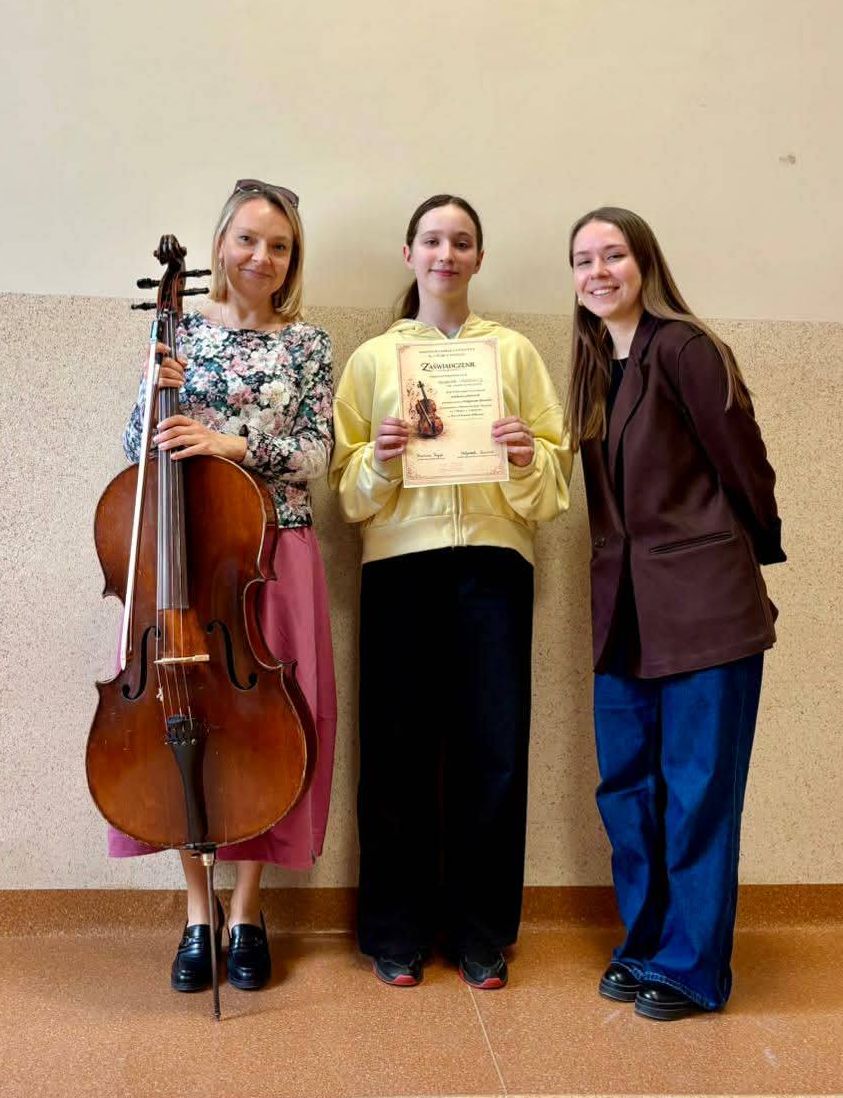 W środę 15 kwietnia 2026 roku z inicjatywy nauczycielki klasy wiolonczeli, pani Karoliny Pająk, odbyły się w naszej szkole warsztaty wiolonczelowe, prowadzone przez panią Małgorzatą Ruszniak. Uczniowie mieli okazję pracować nad techniką gry, jakością dźwięku, artykulacją oraz interpretacją utworów. Zajęcia przebiegały w atmosferze skupienia a prowadząca dzieliła się licznymi praktycznymi wskazówkami dotyczącymi codziennego ćwiczenia oraz świadomego budowania muzycznej wypowiedzi. Warsztaty stały się dla uczniów cennym doświadczeniem, które dostarczyło wielu inspiracji i motywacji do dalszego rozwoju artystycznego.