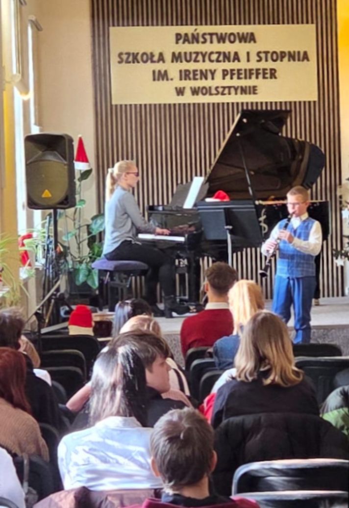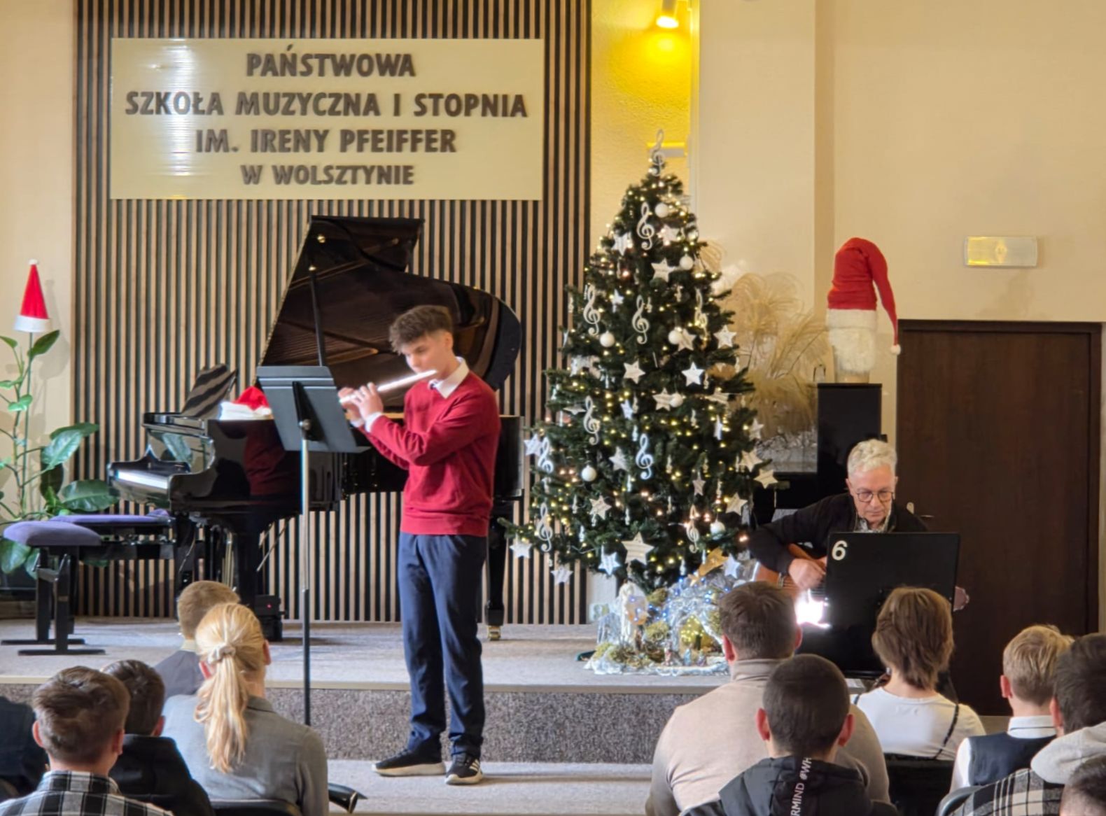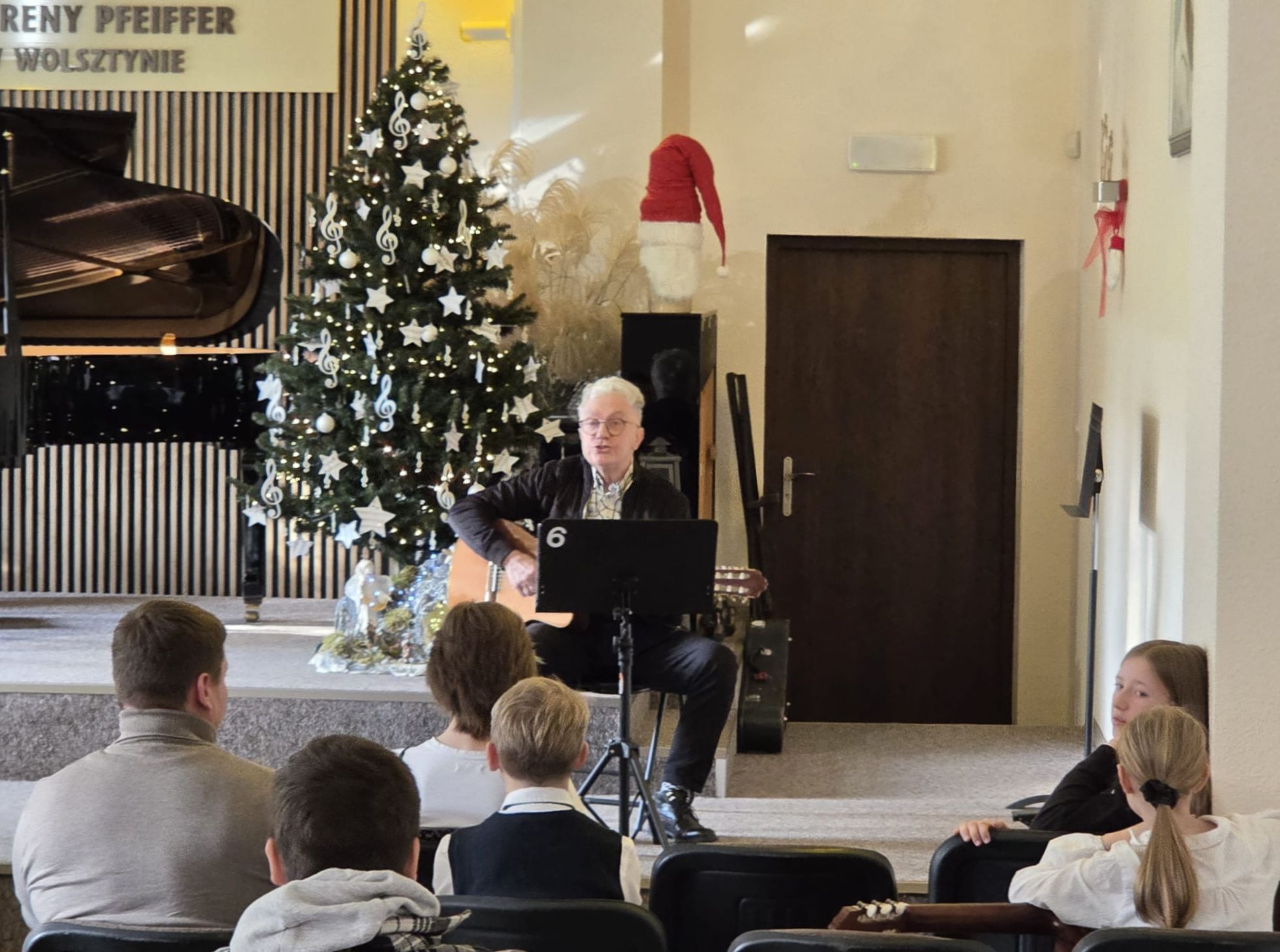 4 grudnia 2025 roku wystąpiliśmy z Koncertem Mikołajkowym dla uczniów Niepublicznej Szkoły Podstawowej i Branżowej I st. w Wolsztynie. Koncert zakończył się wspólnym śpiewaniem kolęd, a po nim nasi goście mieli mozliwość zwiedzić szkołę muzyczną.