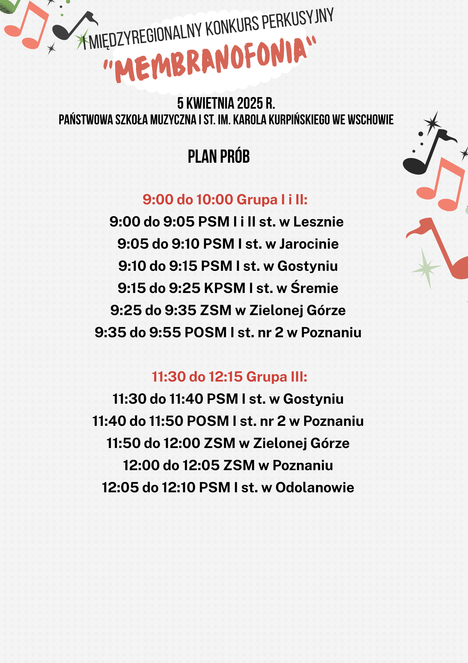 Poniżej udostępniamy harmonogram konkursu oraz plan prób.