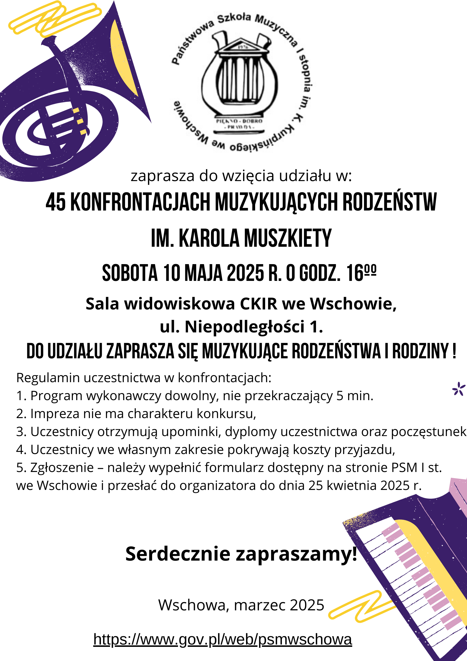 Państwowa Szkoła Muzyczna I stopnia im. Karola Kurpińskiego we Wschowie zaprasza do wzięcia udziału w