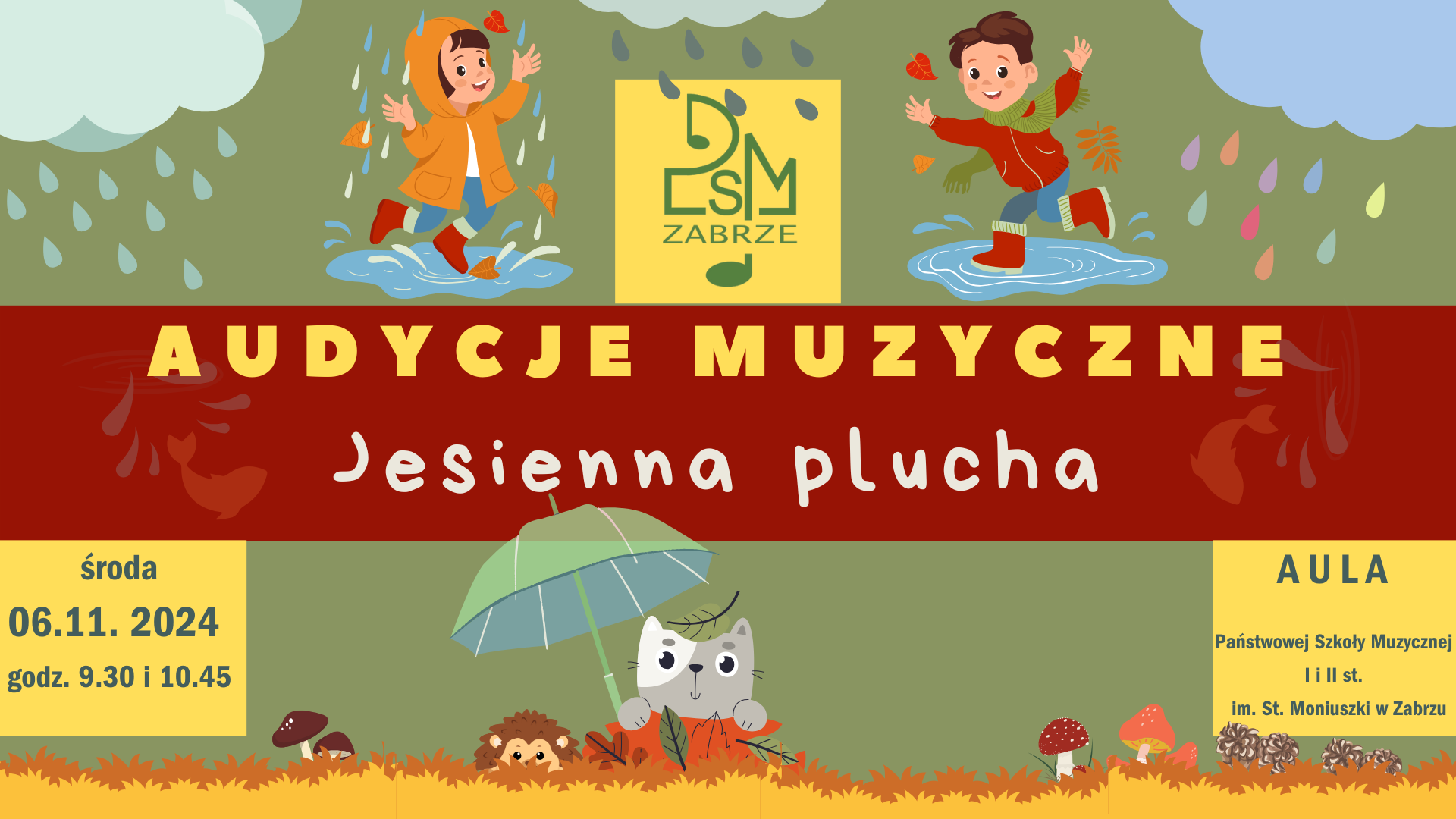 W środę, 6 listopada 2024 roku odbędą się kolejne w tym roku szkolnym audycje muzyczne pod tytułem Jesienna plucha. Serdecznie zapraszamy grupy szkolno-przedszkolne, które zarezerwowały wstęp.