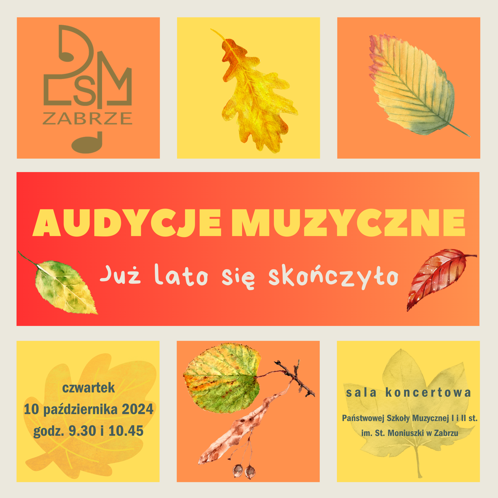 W czwartek, 10 października 2024 roku odbędą się pierwsze w tym roku szkolnym audycje muzyczne pod tytułem Już lato się skończyło. Serdecznie zapraszamy grupy szkolno-przedszkolne, które zarezerwowały wstęp.