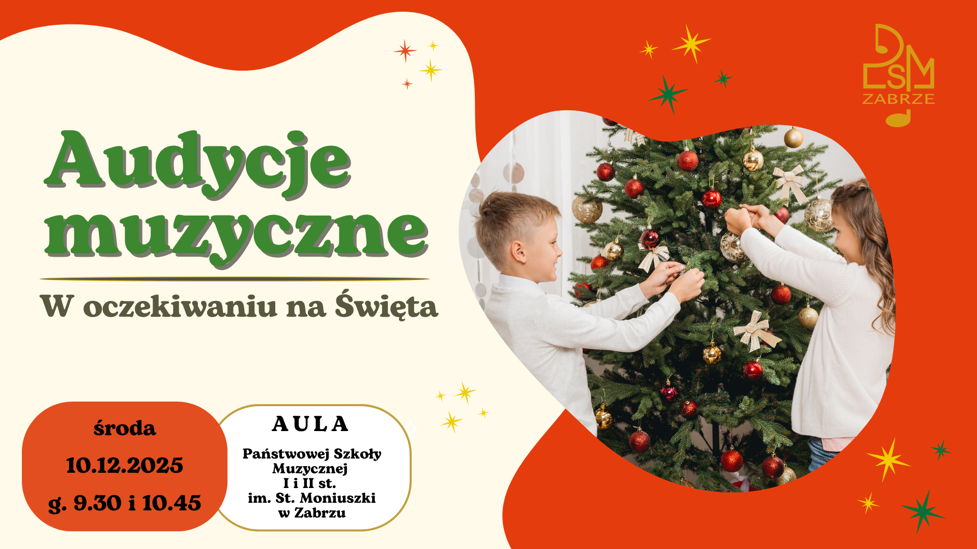 W środę, 10 grudnia 2025 roku odbędą się kolejne audycje muzyczne pod tytułem W oczekiwaniu na Święta. Serdecznie zapraszamy grupy szkolno-przedszkolne, które zarezerwowały wstęp.