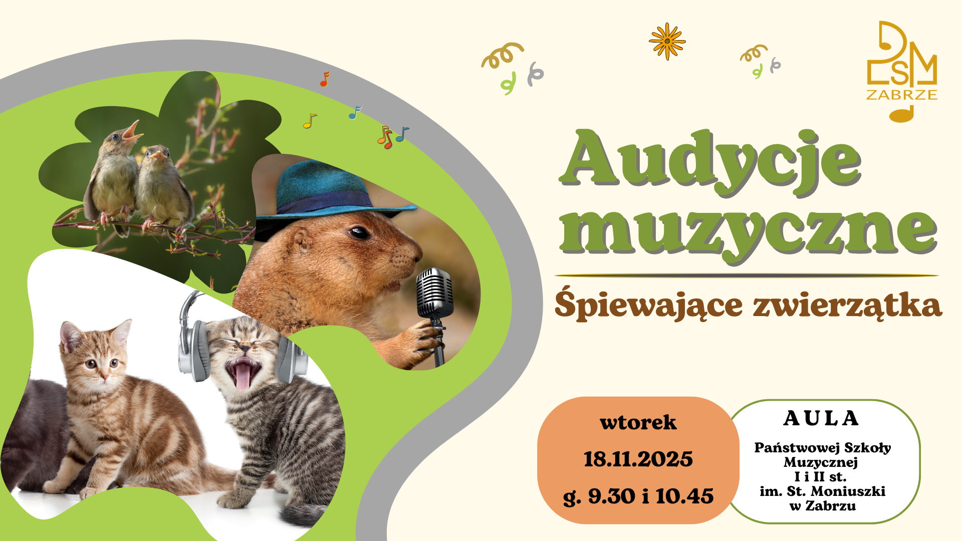 We wtorek, 18 listopada 2025 roku odbędą się kolejne audycje muzyczne pod tytułem Śpiewające zwierzątka. Serdecznie zapraszamy grupy szkolno-przedszkolne, które zarezerwowały wstęp.